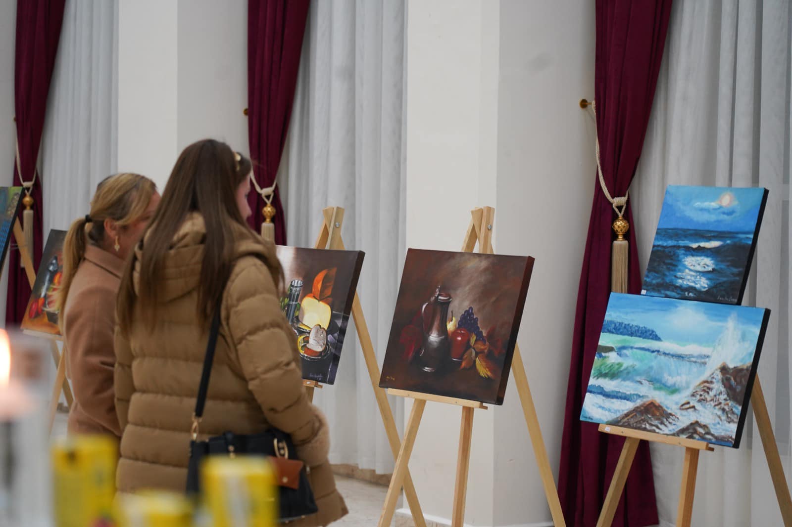 Açık artırmada, yağlı boya ve kara kalem tablolarının yanı sıra Atatürk tablosu, el işi ve tabak üzerine işlenmiş figürlerin bulunduğu birçok eser satışa sunuldu.
