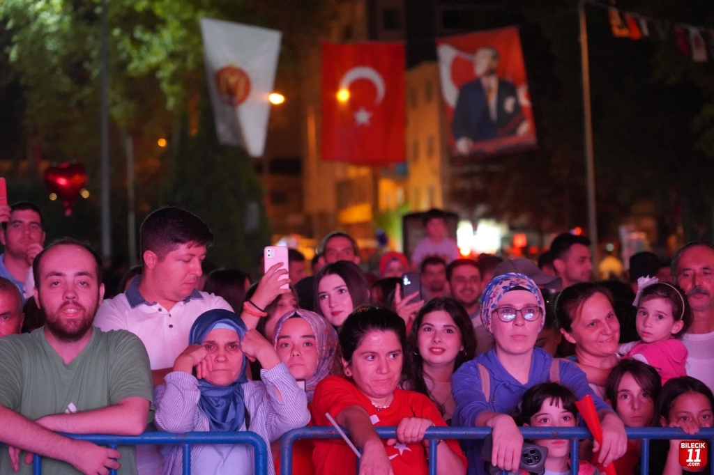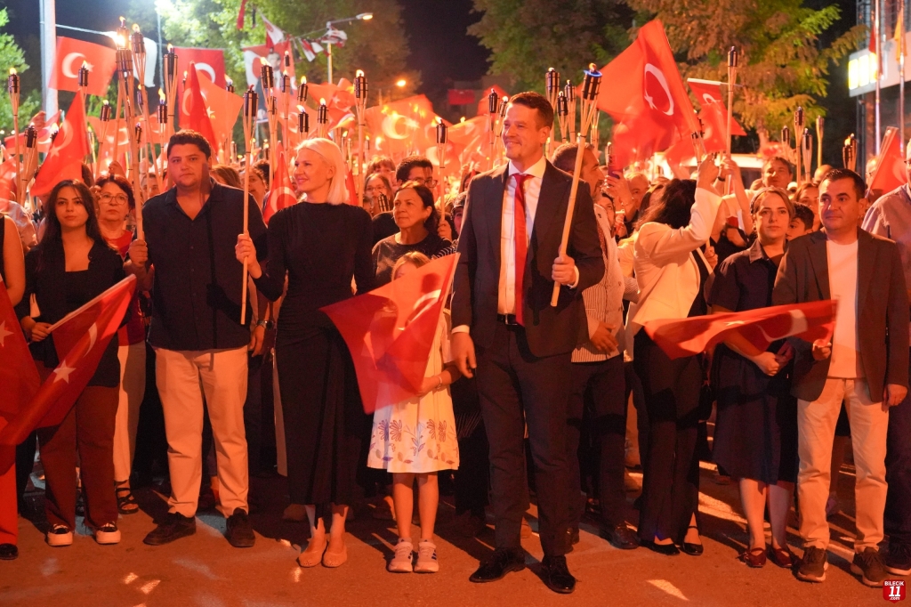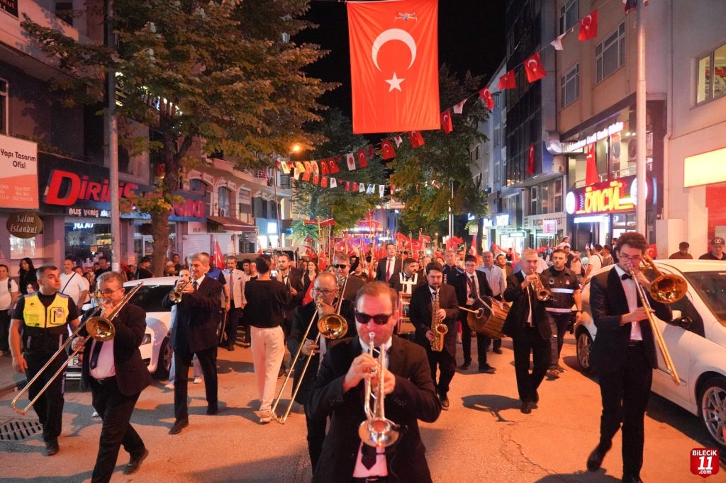 Belediye Başkanı Melek Mızrak Subaşı eşi Berat Subaşı, siyasi parti temsilcileri, sivil toplum kuruluşu ve dernek temsilcileriyle çok sayıda Bilecikli, ellerinde Türk bayraklarıyla yürüdü.