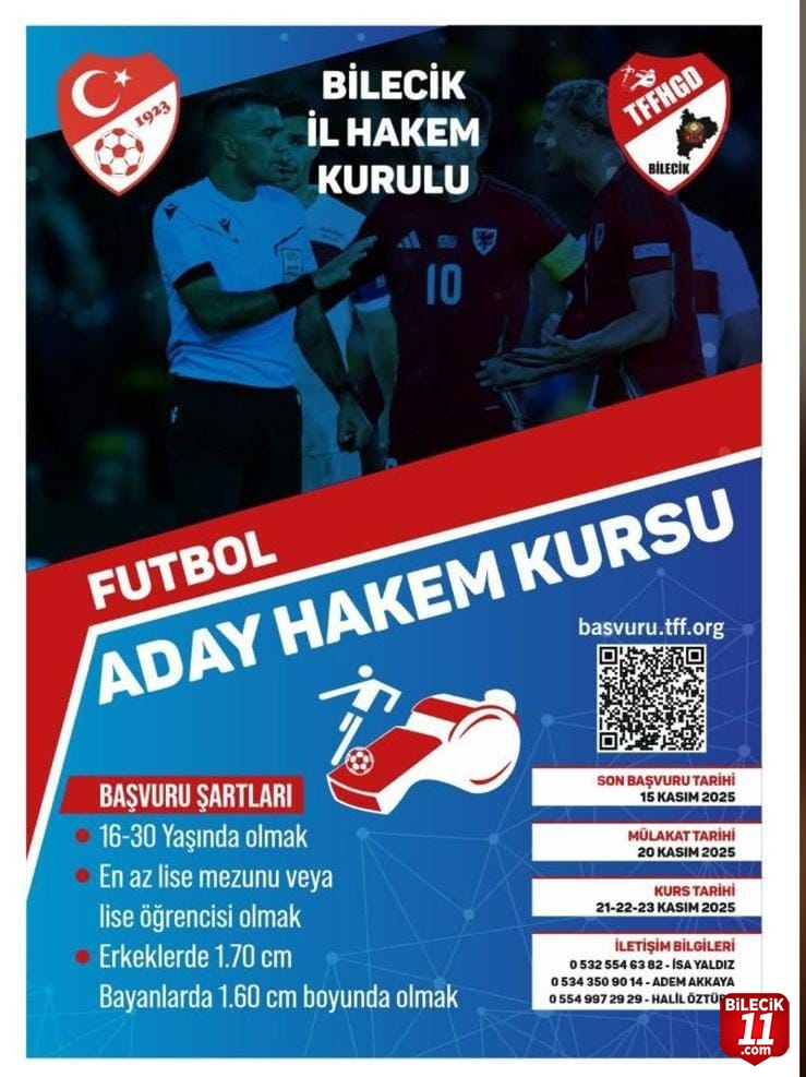 Bilecik’te Futbol Aday Hakem kursu açılacak.