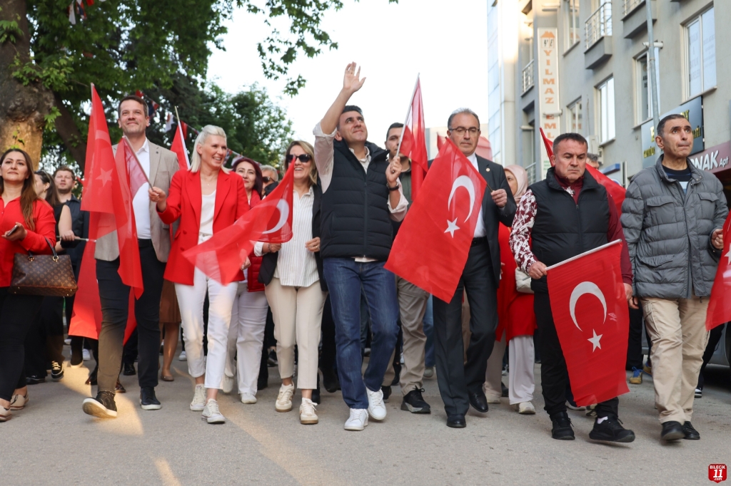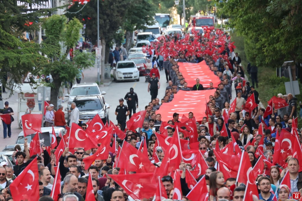 Bilecik Valisi Şefik Aygöl, Belediye Başkanı Melek Mızrak Subaşı, Bilecik Şeyh Edebali Üniversitesi (BŞEÜ) Rektör Yardımcısı Prof. Dr. Mehmet Kurban, Ticaret ve Sanayi Odası Başkanı Mehmet Ergün, Gençlik ve Spor İl Müdürü Ramazan Demir, daire müdürleri, siyasi parti ve sivil toplum kuruluşu temsilcileriyle vatandaşlar, ellerinde Türk bayraklarıyla Atatürk ve Tevfikbey caddeleri üzerinden Cumhuriyet Meydanı’na yürüdü.