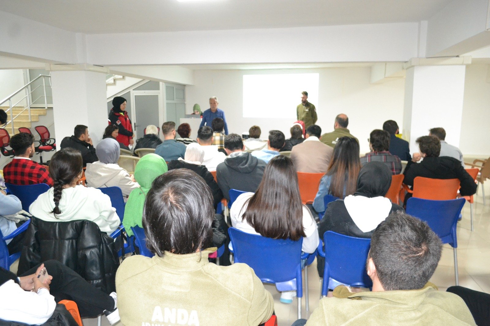 Kent Konseyi binasında gerçekleştirilen etkinliğe gençlerin fazlaca ilgi gösterdiği gözlenirken, yapılan sunumun ardından çalan sirenler ile birlikte vatandaşlar deprem öncesi, deprem anı ve sonrasında nasıl hareket edilmesi gerektiğini öğrendiler.