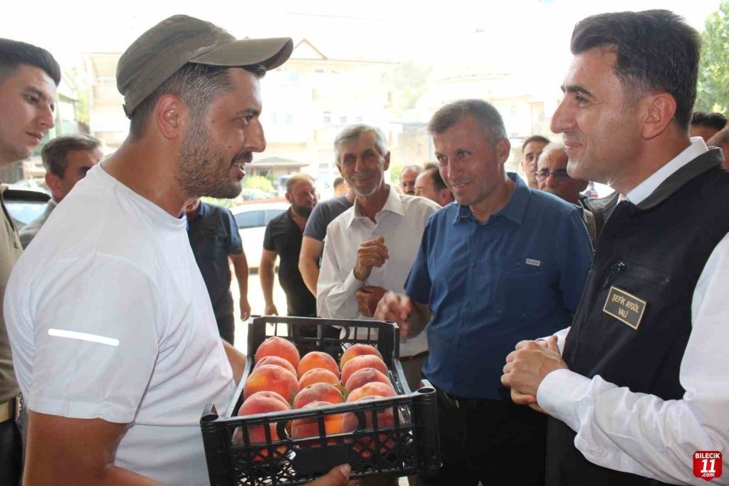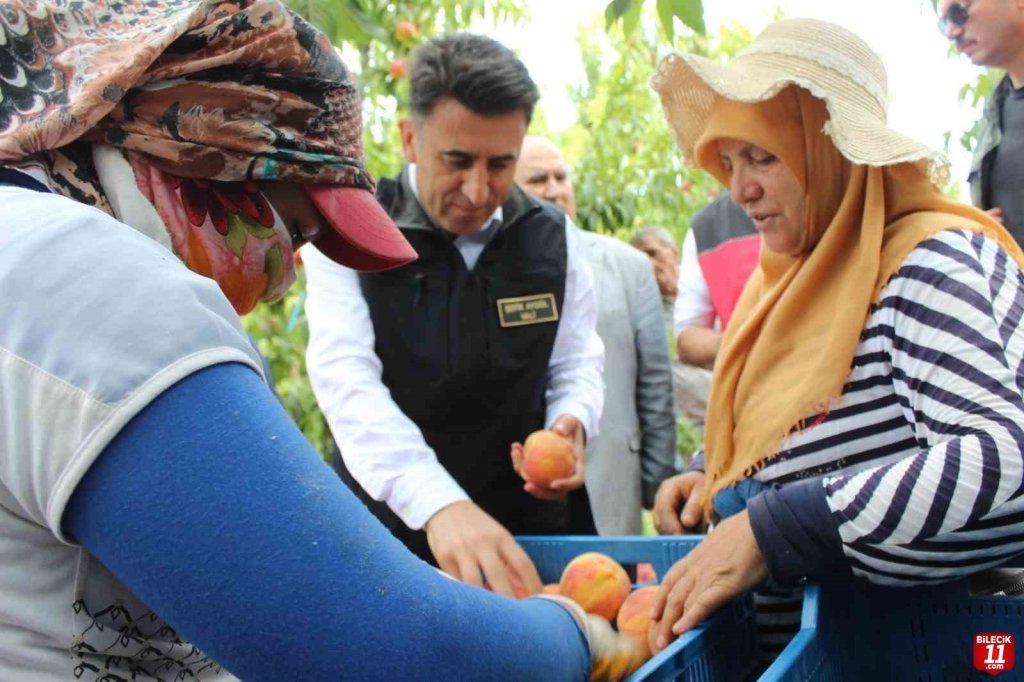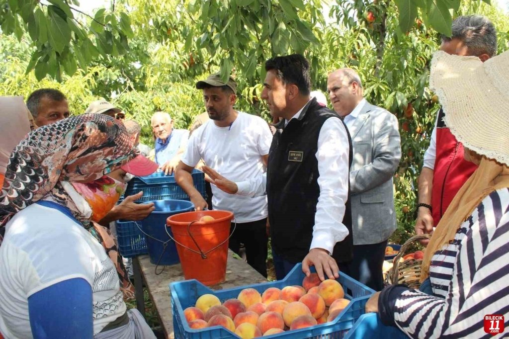 Hasada katılan Bilecik Valisi Şefik Aygöl, “Osmaneli ilçemizin Çerkeşli köyünde, bir şeftali bahçesindeyiz. Bugün şeftali hasadı yapıyoruz. Memleketimizde daha çok Bursa şeftalisi olarak bilinen şeftalinin en güzel üretim yerlerinden birindeyiz. Bizim ilimizde özellikle Osmaneli ilçemizde 20 dekar üzerinde bir üretimimiz var. Bu sene de hedefimiz 41 bin ton civarında, 41 bin kere maşallah demek istiyoruz. Böyle bir üretimimiz olacak. Tabi bu üretimin önemli bir bölümü ihracat kalemi olarak yurtdışına gidiyor. Diğer bir bölümünde ülke içerisinde biz bu satışlarımızı yapıyoruz. Ayrıyeten satılamayan ve fiyatı ucuzlayan ürünlerimizi burada saklama yaparak yeniden ileride satma fırsatı bulmuş oluyoruz. Ben bereketli bir yıl olmasını diliyorum. Yine ifade ediyoruz özellikle şeftalinin en güzeli Bilecik’te olduğunu iddia ediyoruz” dedi.