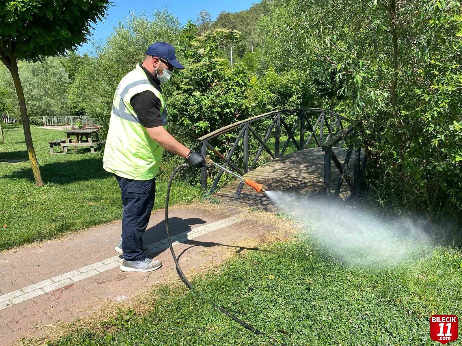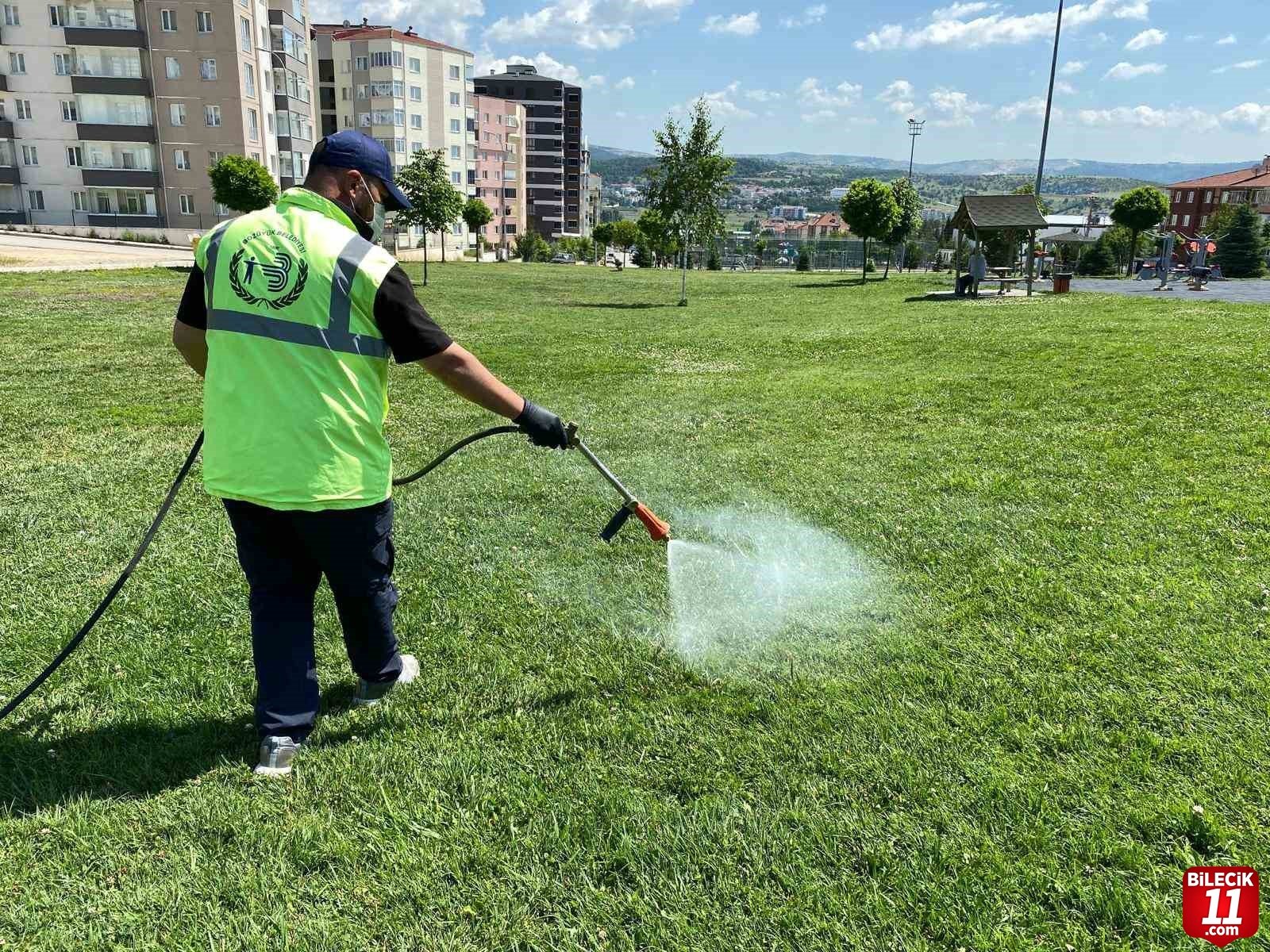 Türbin mesire yeri gibi piknik alanları ile birlikte parklar, çocuk oyun alanları ve yeşil alanlarda da kene mücadelesi yapılıyor.