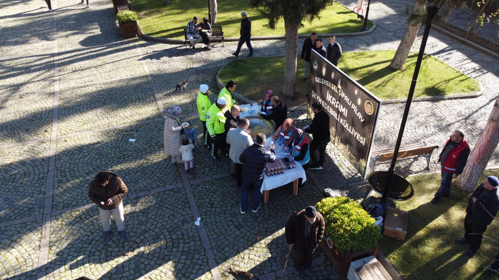 Şeyh Edebali Külliyesi’nde vatandaşlara pilav dağıtan Bilecik Valisi Şefik Aygöl, gazetecilere; şifalı pilavın bir Osmanlı geleneği olduğunu söyledi.