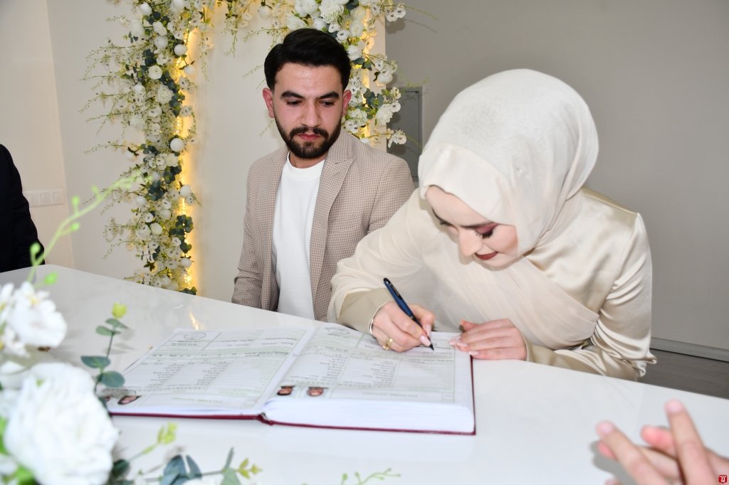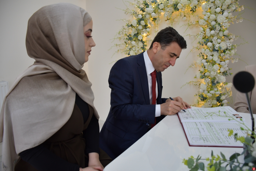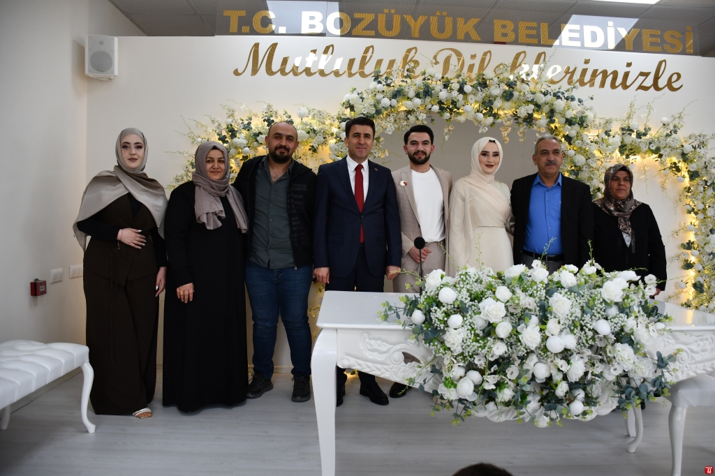 Bozüyük Belediyesi 4 Eylül Sosyal ve Kültürel Tesisi’ndeki törende Aile ve Sosyal Hizmetler Bakanlığının “Evlenecek Gençlerin Desteklenmesi Projesi” kapsamında 2 yıl geri ödemesiz ve faizsiz evlilik kredisinden faydalanan 25 yaşlarındaki Rozarin Naz ile Mehmet Nur Öter çifti, Vali Aygöl’ün şahitliğinde evliliğe adım attı.