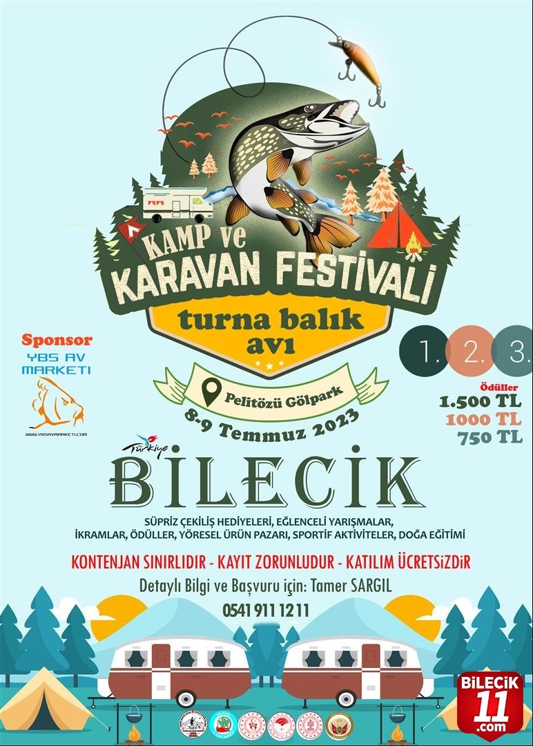 Bilecik Valiliği himayesinde Bilecik İl Kültür ve Turizm Müdürlüğü ve Bilecik Avcılar Kulübü Derneği’nin koordinasyonunda ilgili paydaş kamu kurum ve kuruluşların destekleri ile 2. Geleneksel Kamp & Karavan, Turna Balık Avı Pelitözü Gölpark’ta; kamp, karavan ve sporseverlere kapılarını açıyor.