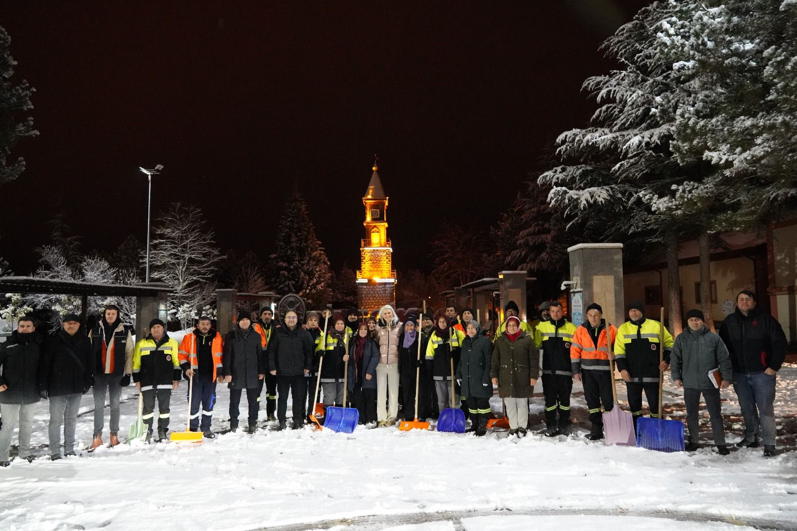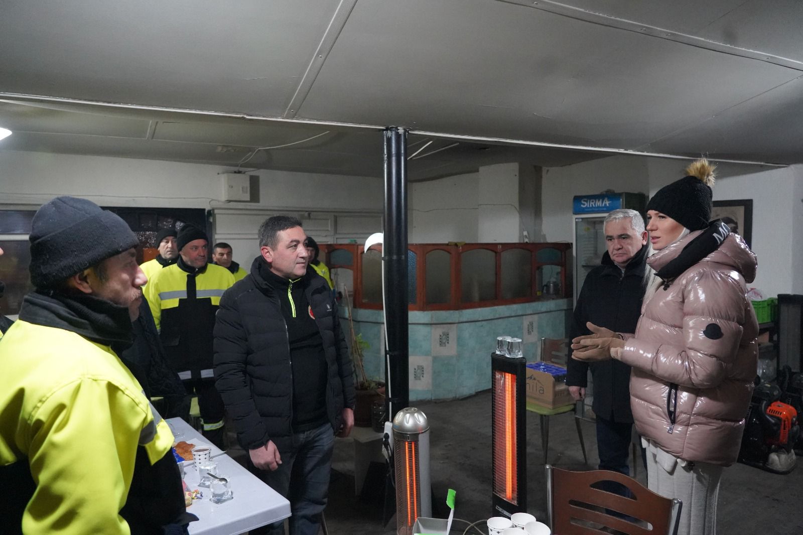 Meteoroloji İl Müdürlüğü’nden alınan bilgiler doğrultusunda ekiplerin gece boyunca sahada olduğunu hatırlatan Başkan V. Melek Mızrak Subaşı, çalışan görevlilere çay ve simit ikramında bulundu.