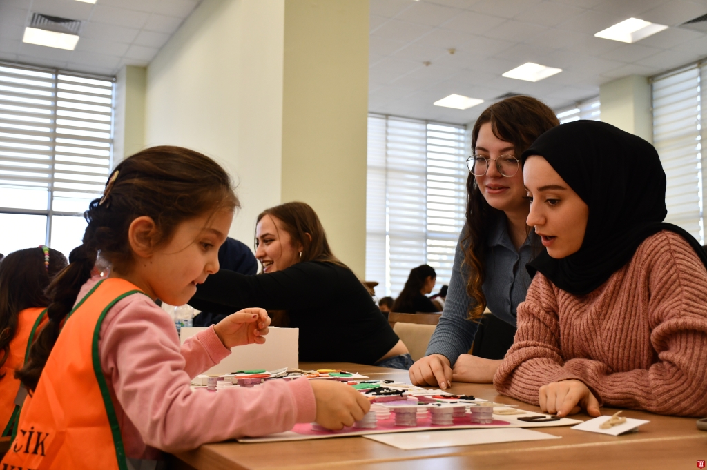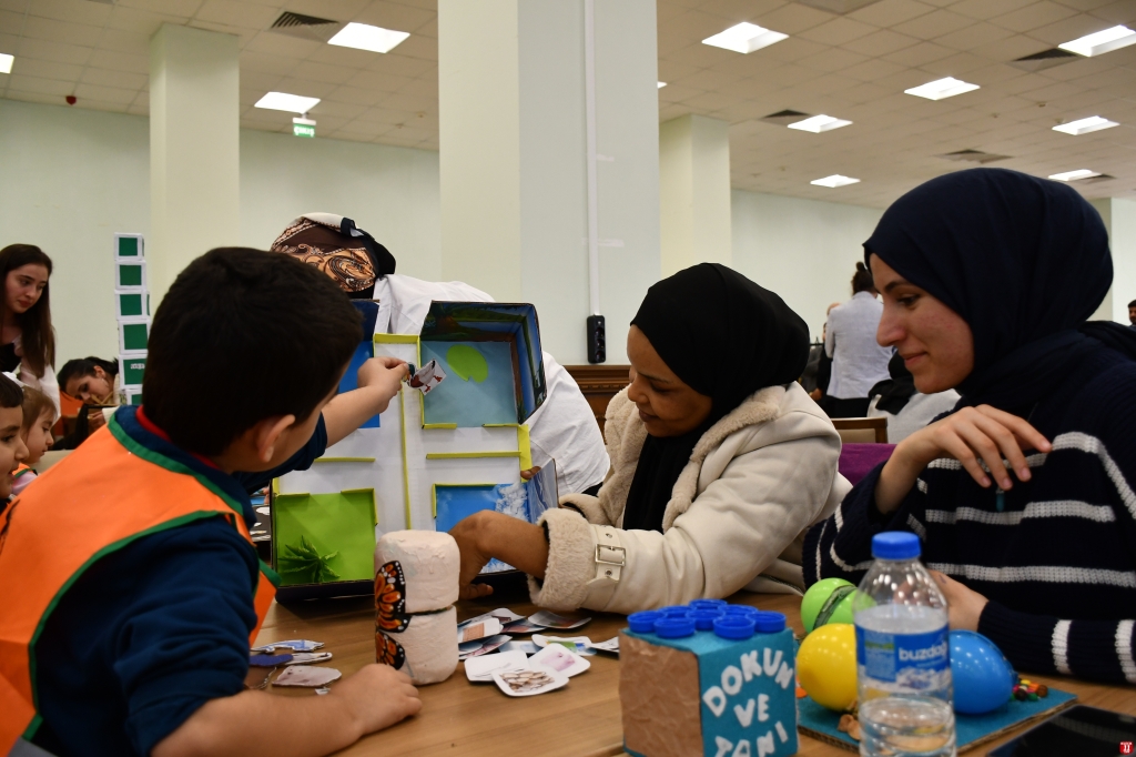 Prof. Dr. Azmi Özcan Kütüphanesi’nde düzenlenen etkinlikte üniversiteli gençler, karton, ip, yapıştırıcı ve boya gibi basit malzemelerle tasarladıkları 100’den fazla materyali, 5 farklı anaokulunda bulunan 350 çocukla buluşturdu.