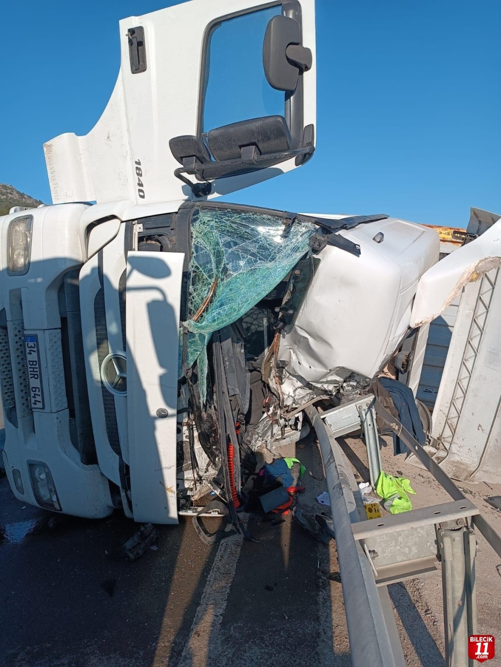 Bilecik’in Osmaneli ilçesinde, konteyner taşıyan tırın devrilmesi sonucu sürücü yaralandı.