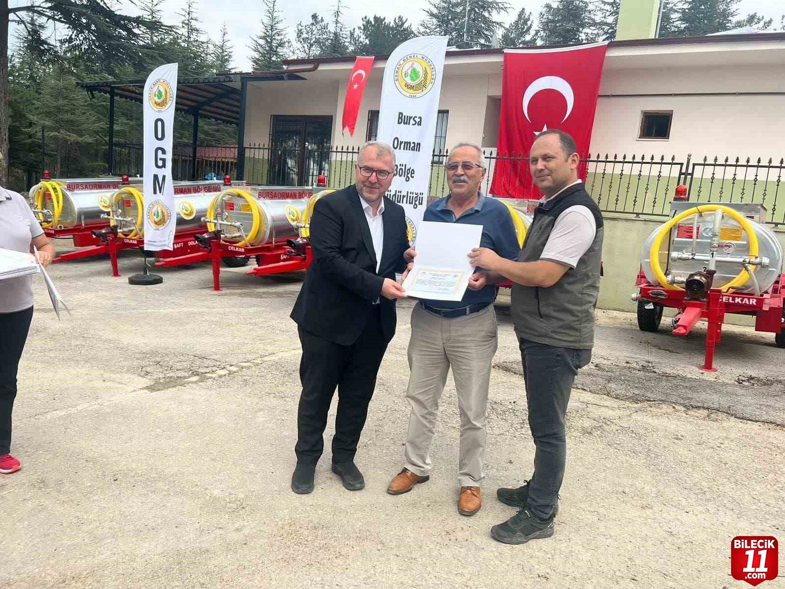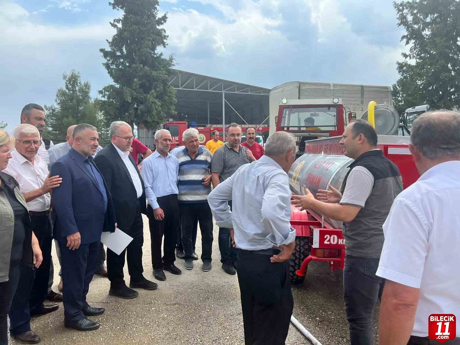 Orman Genel Müdürlüğünce orman yangınlarıyla mücadele çalışmaları sebebi ile satın alarak yangına hassas orman köylerine dağıttığı çok amaçlı su tankerlerinin dağıtımı gerçekleşti. Törene Milletvekili Halil Eldemir, AK Parti Bilecik İl Başkanı Serkan Yıldırım ve köy muhtarları katıldı. Orman yangınlarıyla mücadele çerçevesinde 10 köye sunulan 10 adet su tankeri dağıtımı ve sertifika takdim edildi. İl Başkanı Serkan Yıldırım, 7/24 görev başında olan ve orman yangınlarına karşı mücadele veren Orman Teşkilatının çalışmalarından duyduğu memnuniyeti dile getirerek, vatandaşların da orman yangınları konusunda duyarlı ve dikkatli olmalarını istedi. – İHA