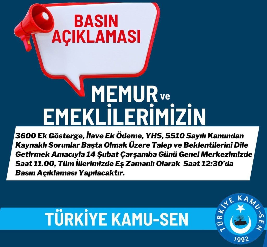 Türkiye Cumhuriyeti, binlerce yıla dayanan kadim devlet anlayışımızın bakiyesi üstünde yükselmiş, köklü bir kamu yönetimi ve memur geleneğine sahiptir. Güçlü devletler, temsilcisi olan memurlarını da güçlü kılar. İkinci asrının başlangıcında, 2024 yılı Emekli Yılı ilan edilmişken devletimizin memur ve emeklilerini mağdur bırakmayacağını ümit ediyoruz. Türk ve Türkiye Yüzyılına yaraşır bir kamu yönetimi ve kamu çalışanı için 2024 yılında mutlaka harekete geçilmesi gerektiğini bir kere daha vurguluyoruz.