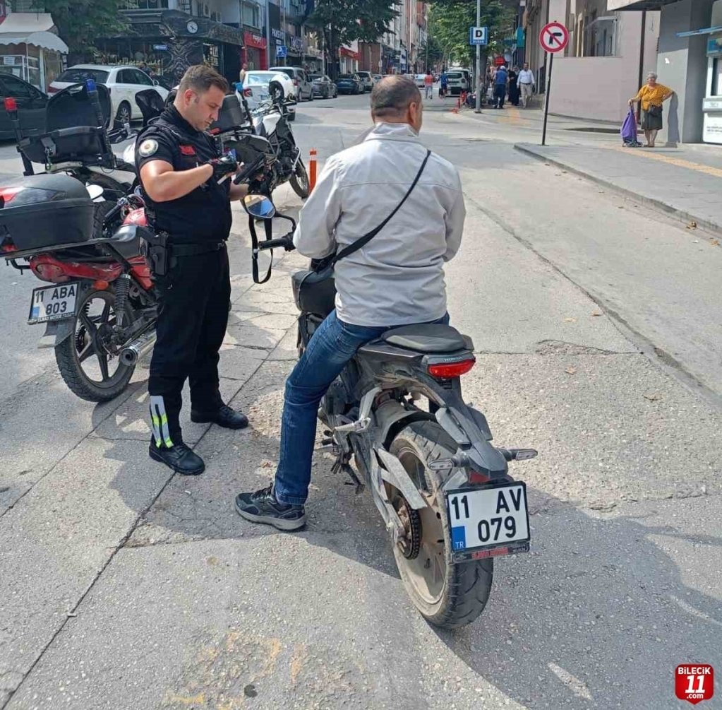 Bilecik’te motosiklet sürücülerine yönelik yapılan denetimde ehliyeti olmayan sürücü tespit edildi.