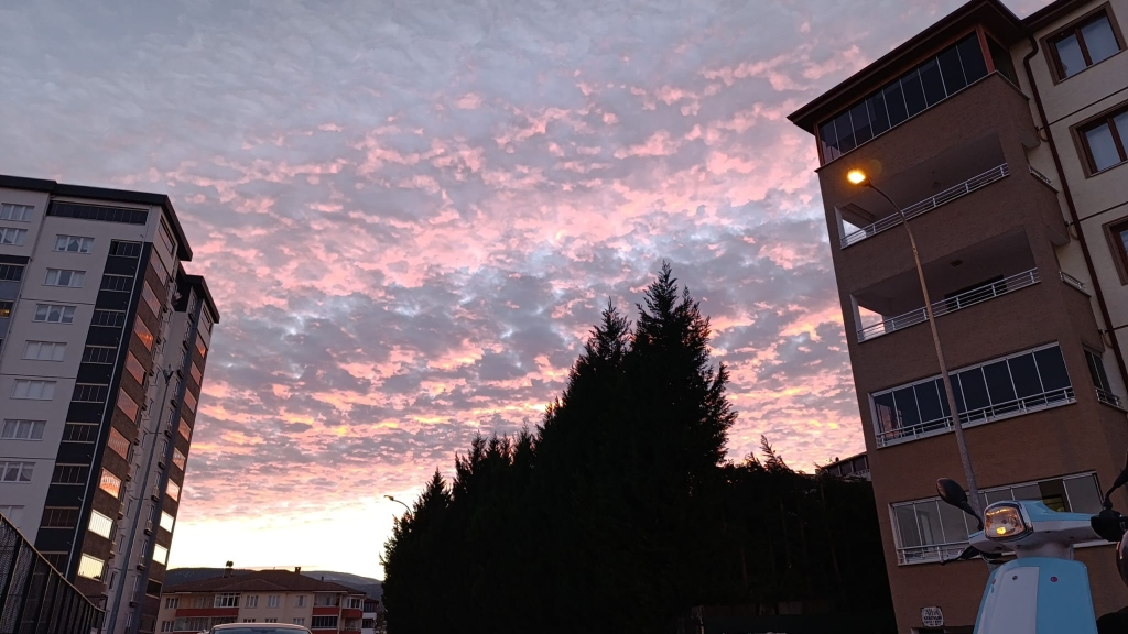 Havaların soğuması sonrası akşam gün batımı sırasında gökyüzünde oluşan kızıllık sonrası vatandaşlar ”Bilecik’in semaları adeta yanıyor” ifadelerini kullandı.