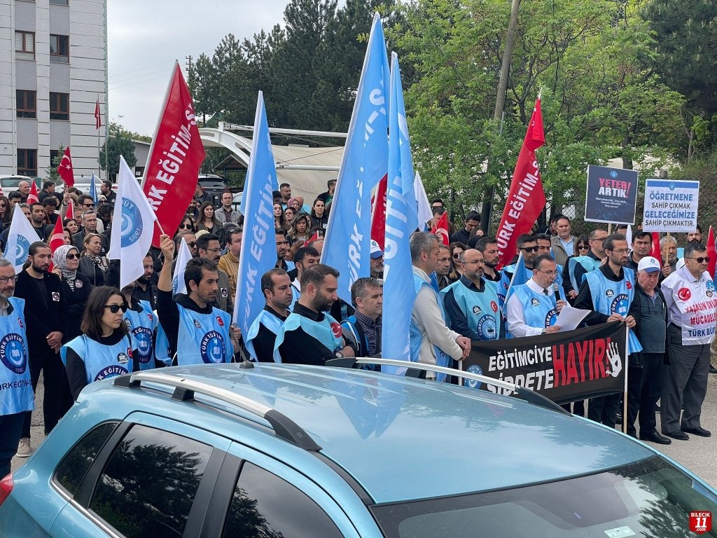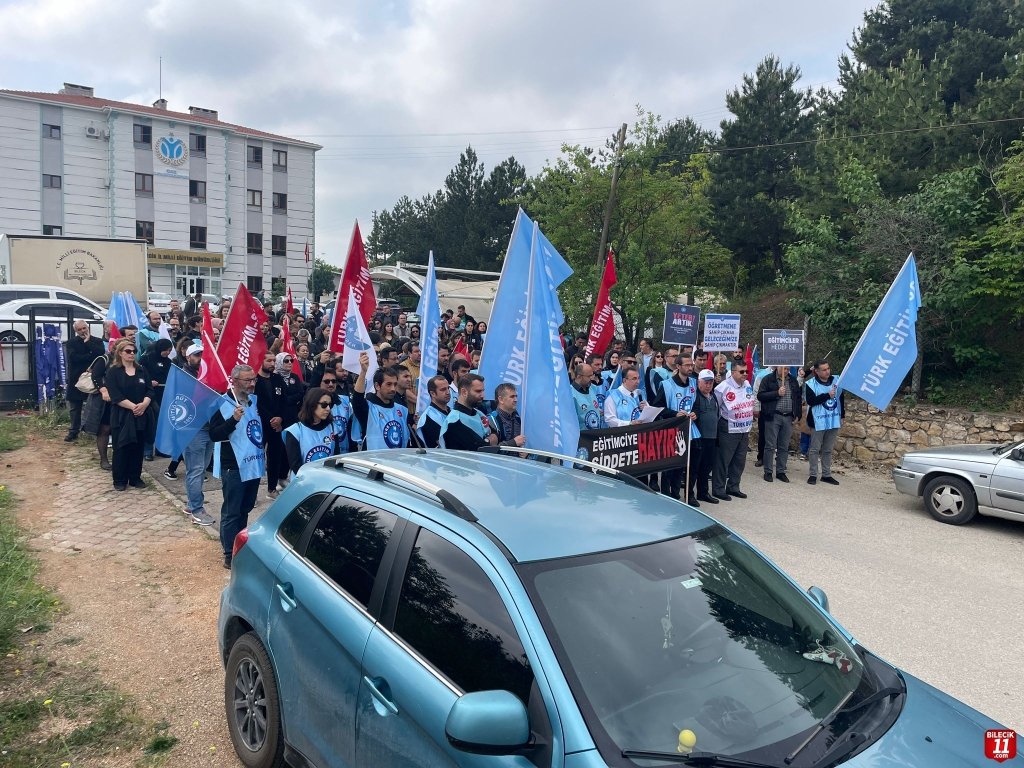Bilecik’te Türkiye Kamu Sen’e bağlı Türk Eğitim-Sen üyesi eğitimciler, İstanbul’da özel bir lisenin okul müdürü İbrahim Oktugan’ın okuldan atılan bir öğrenci tarafından vurularak katledilmesinin ardından iş bırakarak İl Milli Eğitim Müdürlüğü önünde basın açıklaması gerçekleştirdi.