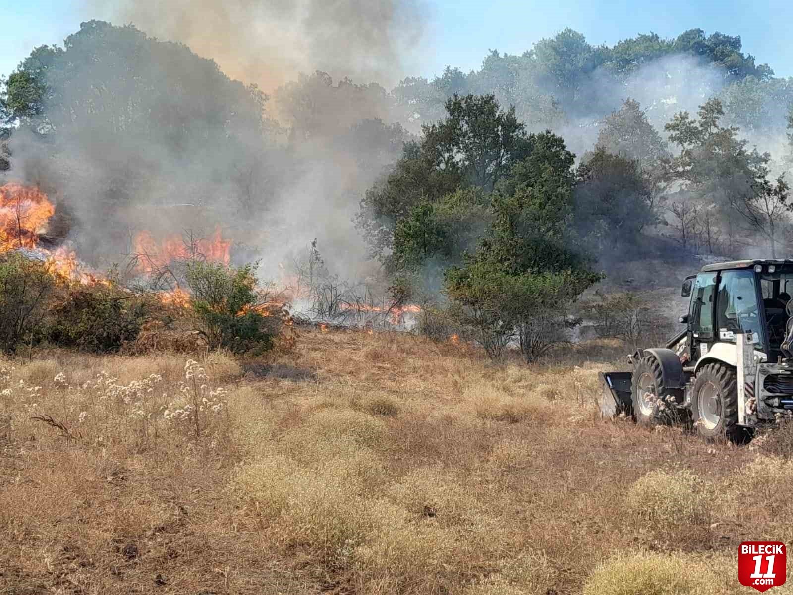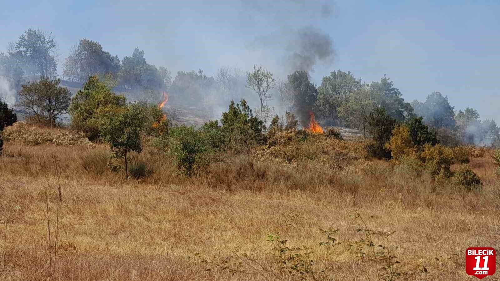 Alınan bilgiye göre, Pazaryeri ilçesine bağlı Ahmet köyü ile Bilecik merkeze bağlı Şükraniye köyleri kırsalı arasında çıkan orman yangınını kontrol altına almak için ekipler çalışmalarını havadan ve karadan sürdürüyor. Yangın çıktığı bölgeye Pazaryeri Belediyesi İtfaiye ekipleri iş makinaları, Pazaryeri Orman İşletme Şefliği ve Bilecik Orman Bölge ekipleri sevk edilirken yangına helikopterde havadan destek veriyor. 10 hektar alanda söndürme çalışmaları devam ederken, yangının çıkış nedeni yapılacak incelemenin ardından netlik kazanacak. – İHA