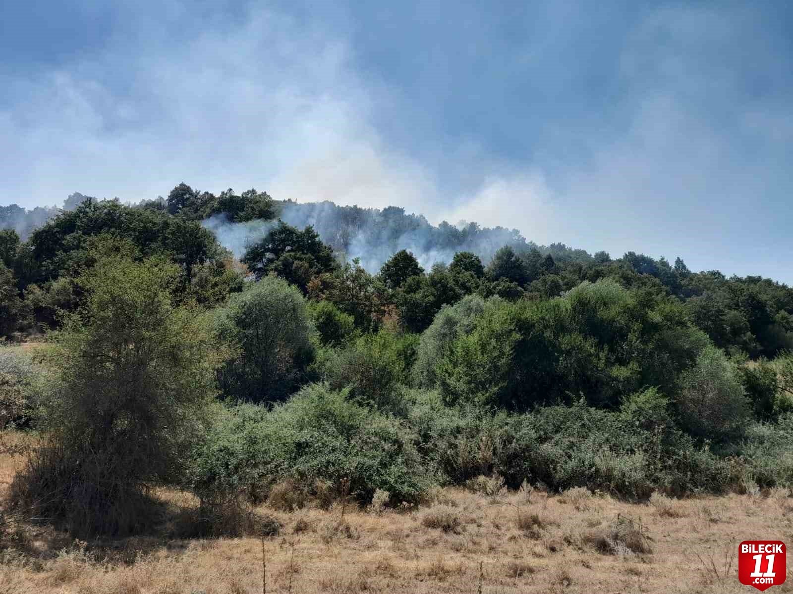 Bilecik’in Pazaryeri ilçesinde başlayan orman yangını kontrol altına almak isteyen ekipler, havadan ve karadan müdahaleyi sürdürüyor.