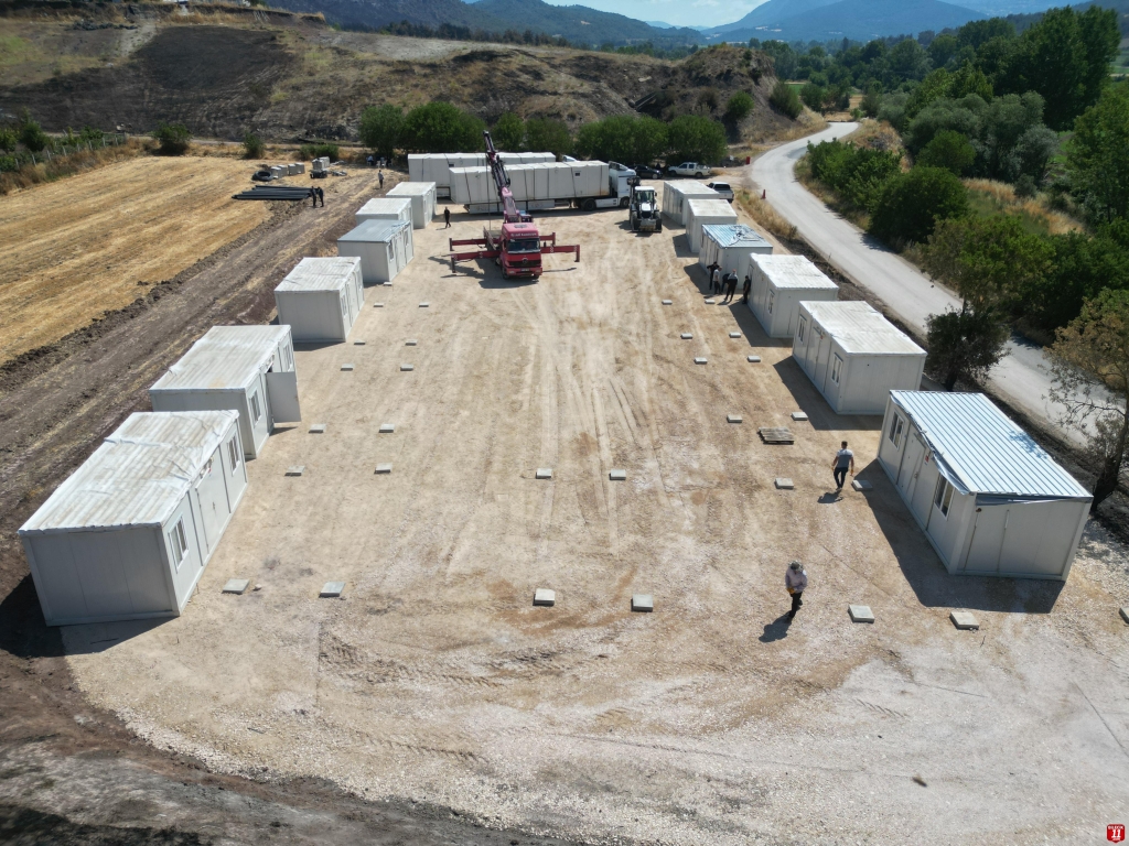 Sakarya’da çıkan ve Bilecik’in Gölpazarı ile Osmaneli ilçeleri sınırlarına sıçrayan orman yangınlarında evleri kullanılamaz hale gelen vatandaşlar için başlatılan konteyner kurulumları devam ediyor.
