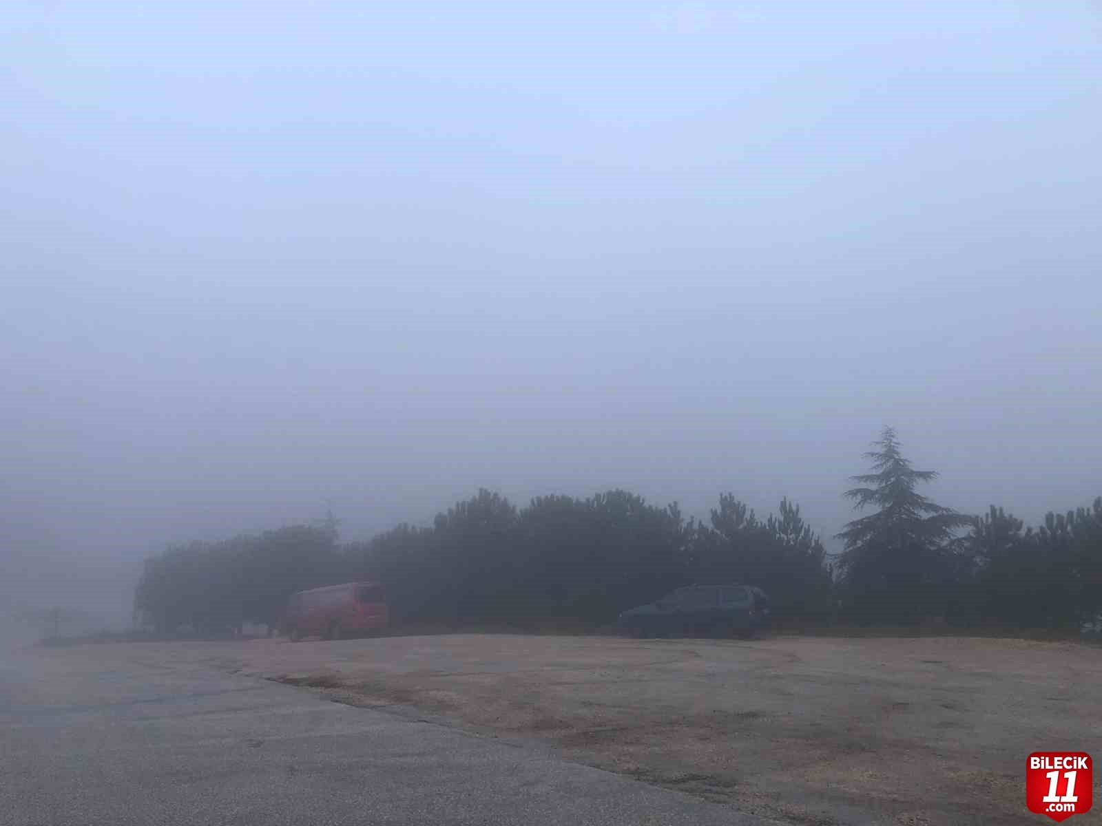 Bilecik’te sabah saatlerinde etkili olan sis görüş mesafesini yer yer 5 metreye kadar düşürdü.