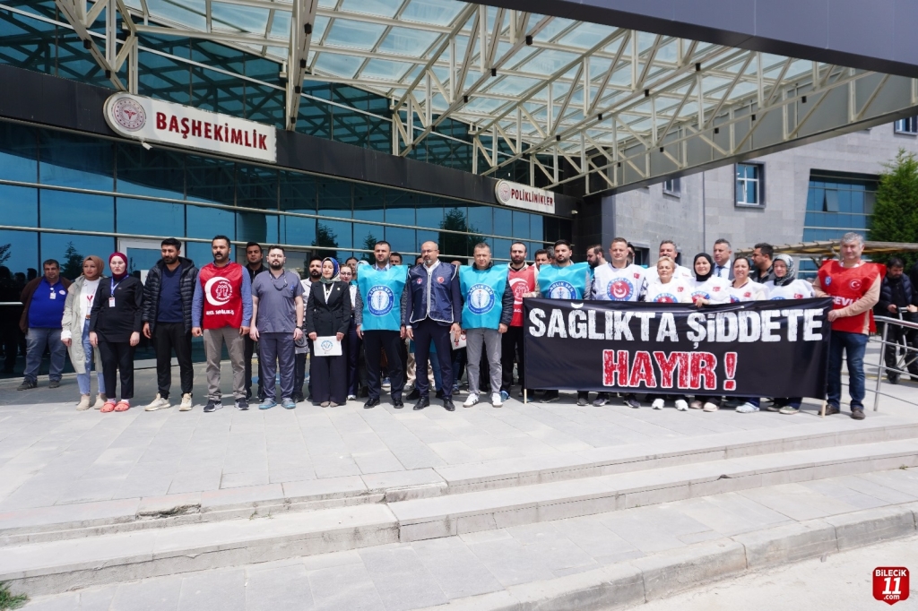 Bilecik Eğitim ve Araştırma Hastanesi’nde görev yapan bir hemşirenin geçtiğimiz günlerde acil serviste sözlü şiddete maruz kalmasının ardından, Bilecik’teki sağlık sendikaları sağlık çalışanlarına yönelik artan şiddet olaylarına tepki göstermek amacıyla ortak bir basın açıklaması düzenledi.