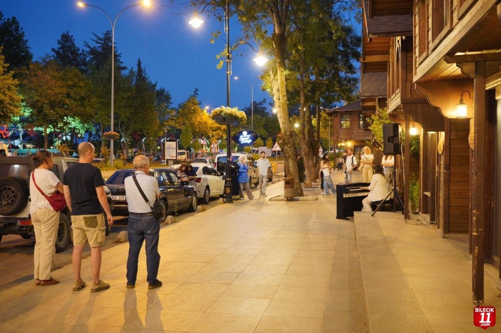 Bilecik Belediyesi Sanat Akademisi Eğitmeni Saltanat Sadvokassova tarafından sunulan piyano konserinde vatandaşlar keyifli bir zaman dilimi yaşadı. Ahşap dükkanlar olarak bilinen ve Fazıl Say Piyano Atölyesi, Okay Temiz Ritm Atölyesi, Hüsnü Şenlendirici Klarnet Atölyesi ve Niyazi Sayın Ney Atölyesi adıyla yeniden düzenleme yapılan sokakta kültür ve sanat aktiviteler gerçekleştiriliyor.