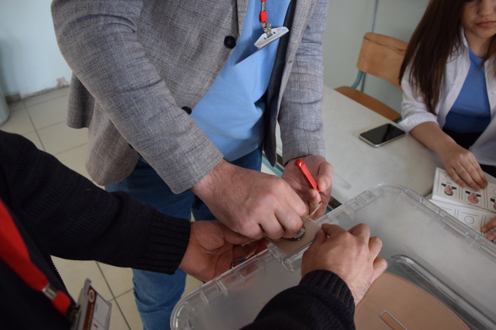 Cumhurbaşkanı ve 28. Dönem Milletvekili Genel Seçimi’nde sandık başında bulunacak görevliler, oy verme işlemleri başlamadan önce hazırlıklarını yaptı. Görevliler sandık başkanları tarafından söylenen kelimeleri tekrar ederek yeminlerini etti. Ardından sandıkları mühürleyip, oy pusulalarını ve zarfları saydılar.