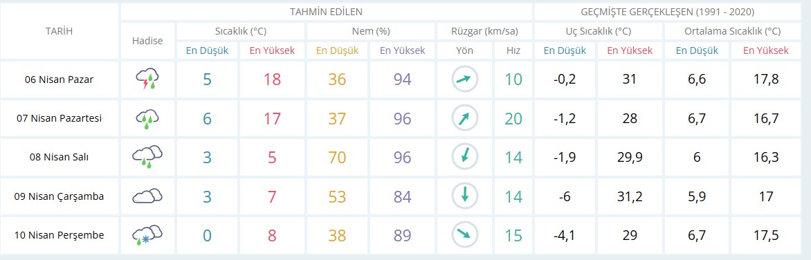 Pazartesi ve Salı günü ise yağışların devam edeceği tahmin ediliyor. Salı gününden itibaren ise hava sıcaklıklarının düşmesi bekleniyor.