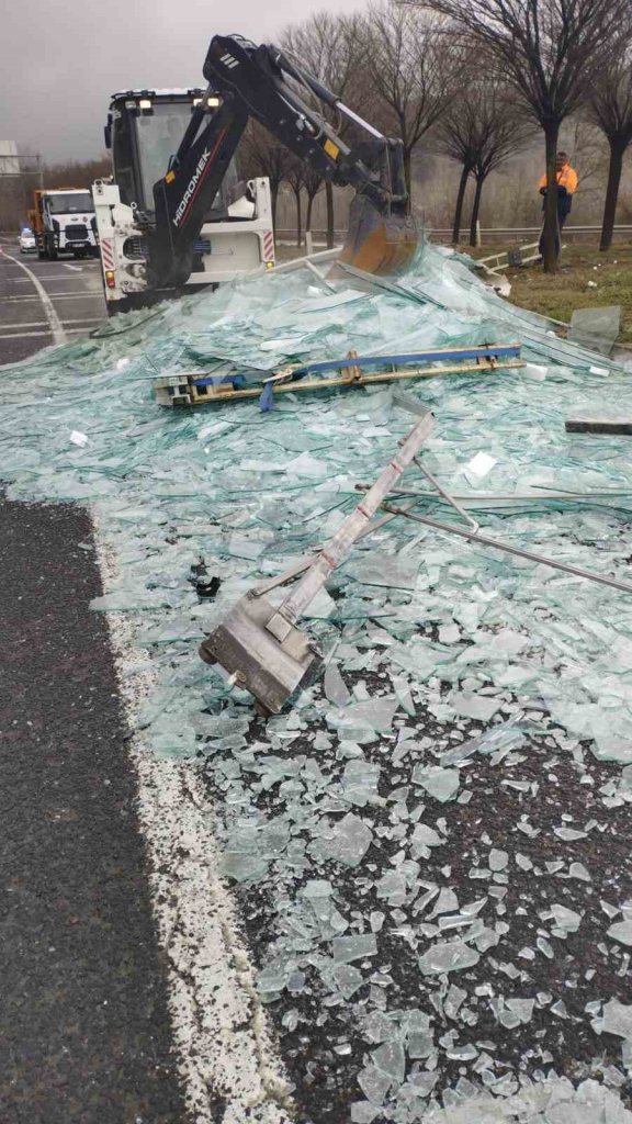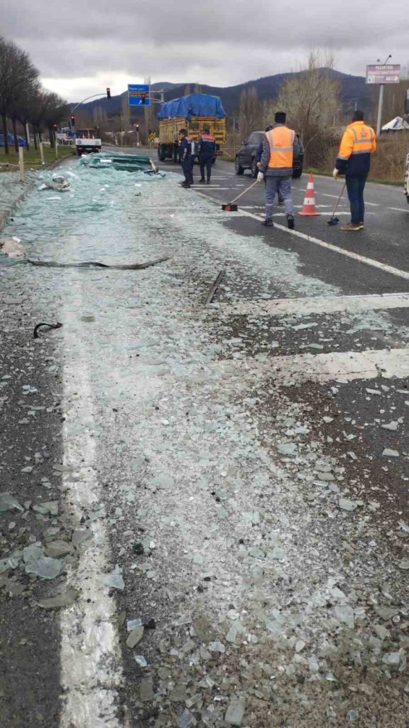 Bilecik-Bozüyük karayolunda ilerleyen tırın dorsesinden düşen camlar nedeniyle trafik akışı durdu.