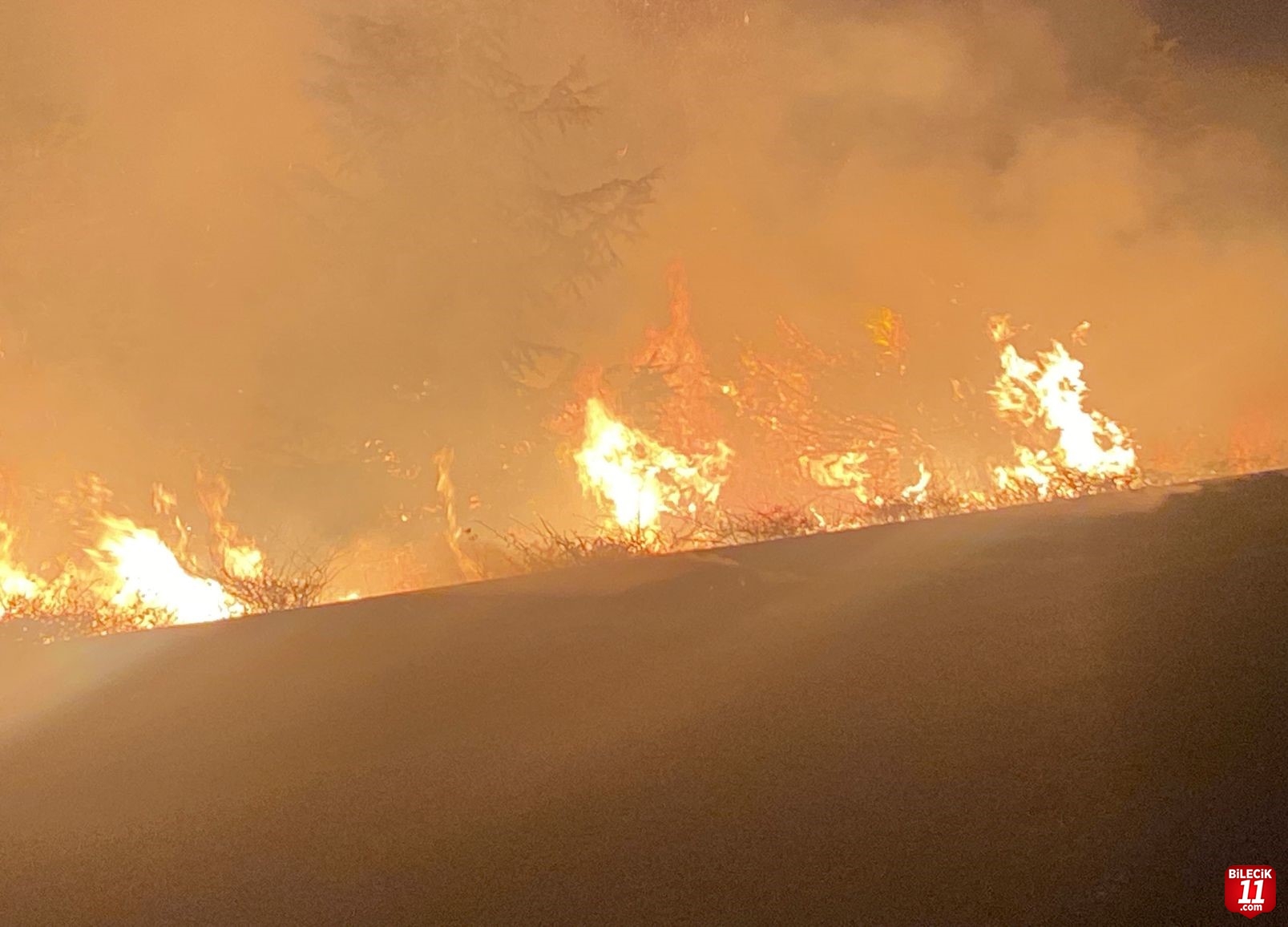 Yangın, Bilecik ve Söğüt itfaiyesi ile Orman İşletme Müdürlüğüne ait bir arazöz ve köylülerin müdahalesiyle yol kenarındaki tarım arazilerine sıçramadan söndürüldü.