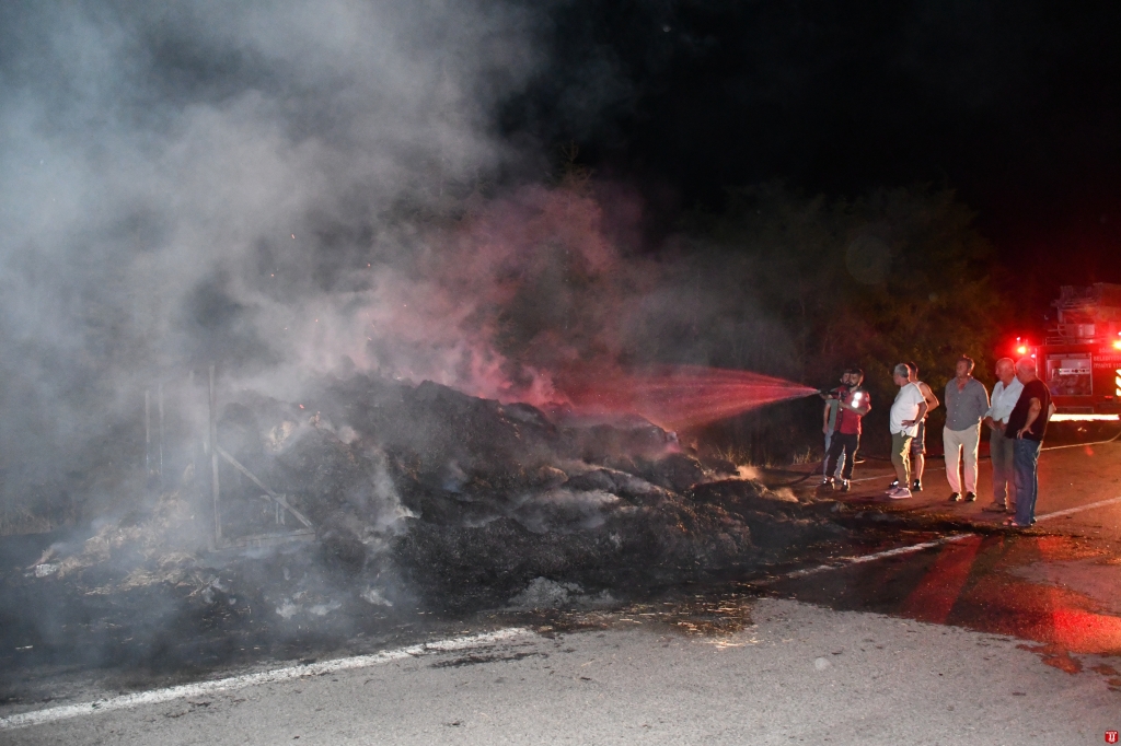 Bilecik-Söğüt kara yolunun Küre Köyü mevkisinde Sefer Çoban idaresindeki traktörün römorkundaki saman balyaları henüz bilinmeyen bir nedenle yanmaya başladı.