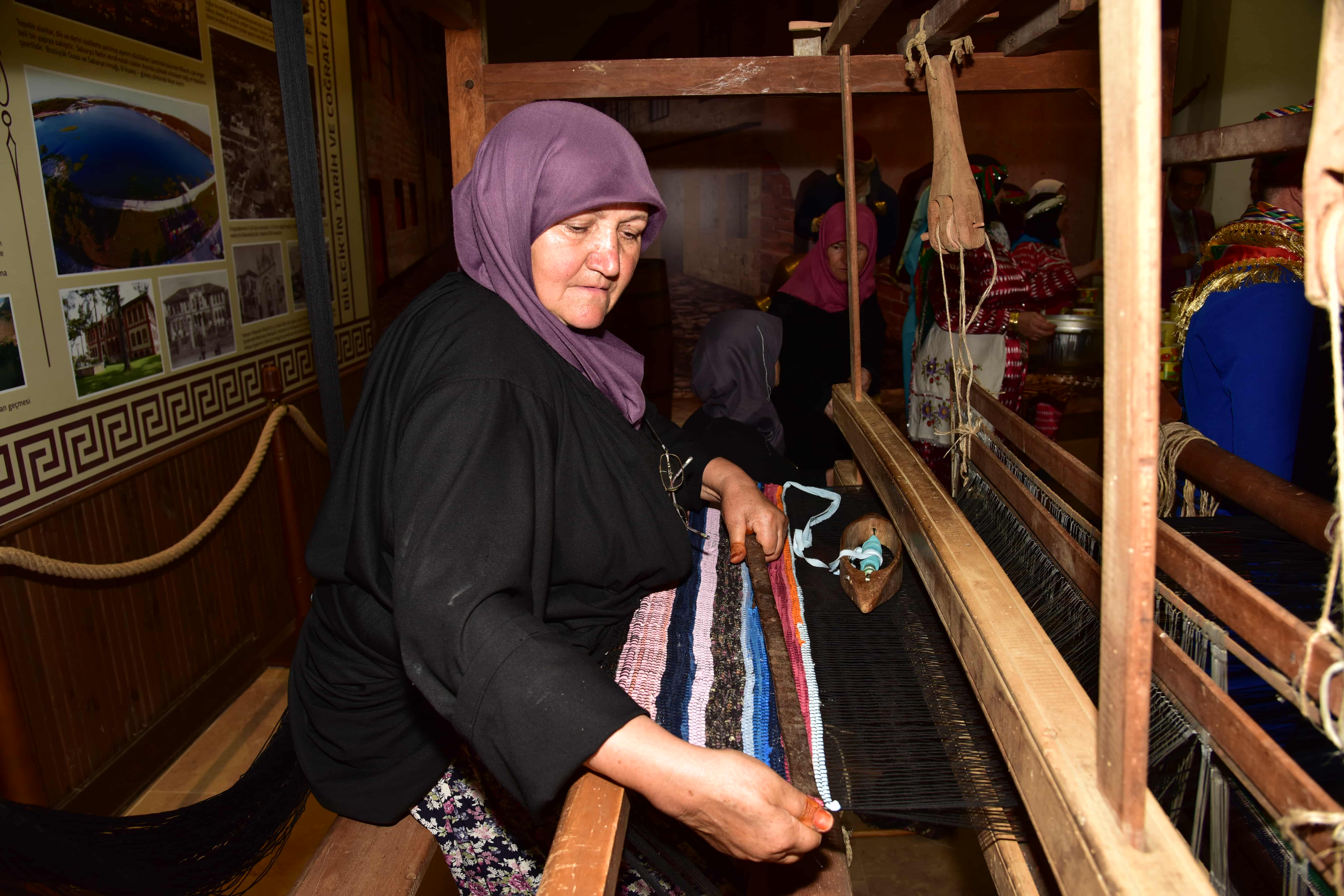 Bilecik Belediyesi Yaşayan Kent Müzesinde; kadınlarımız ve teyzelerimiz tarafından eskiyen elbise ve kıyafetler tekrar işlenerek, halıya dönüşüyor.