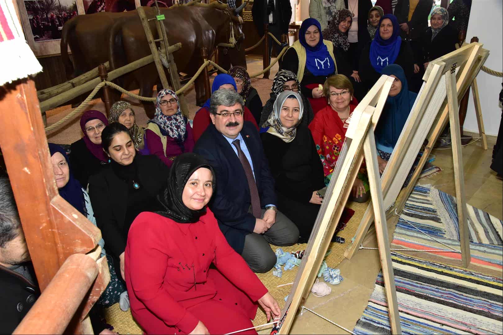 Kadınlarla birlikte dokuma tezgahlarının başına geçen Belediye Başkanı Nihat Can ve eşi Nesrin Can, vatandaşlarımızla fotoğraf çektirdi.