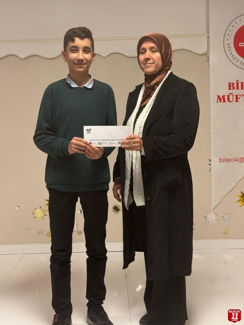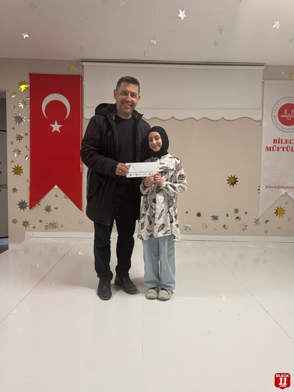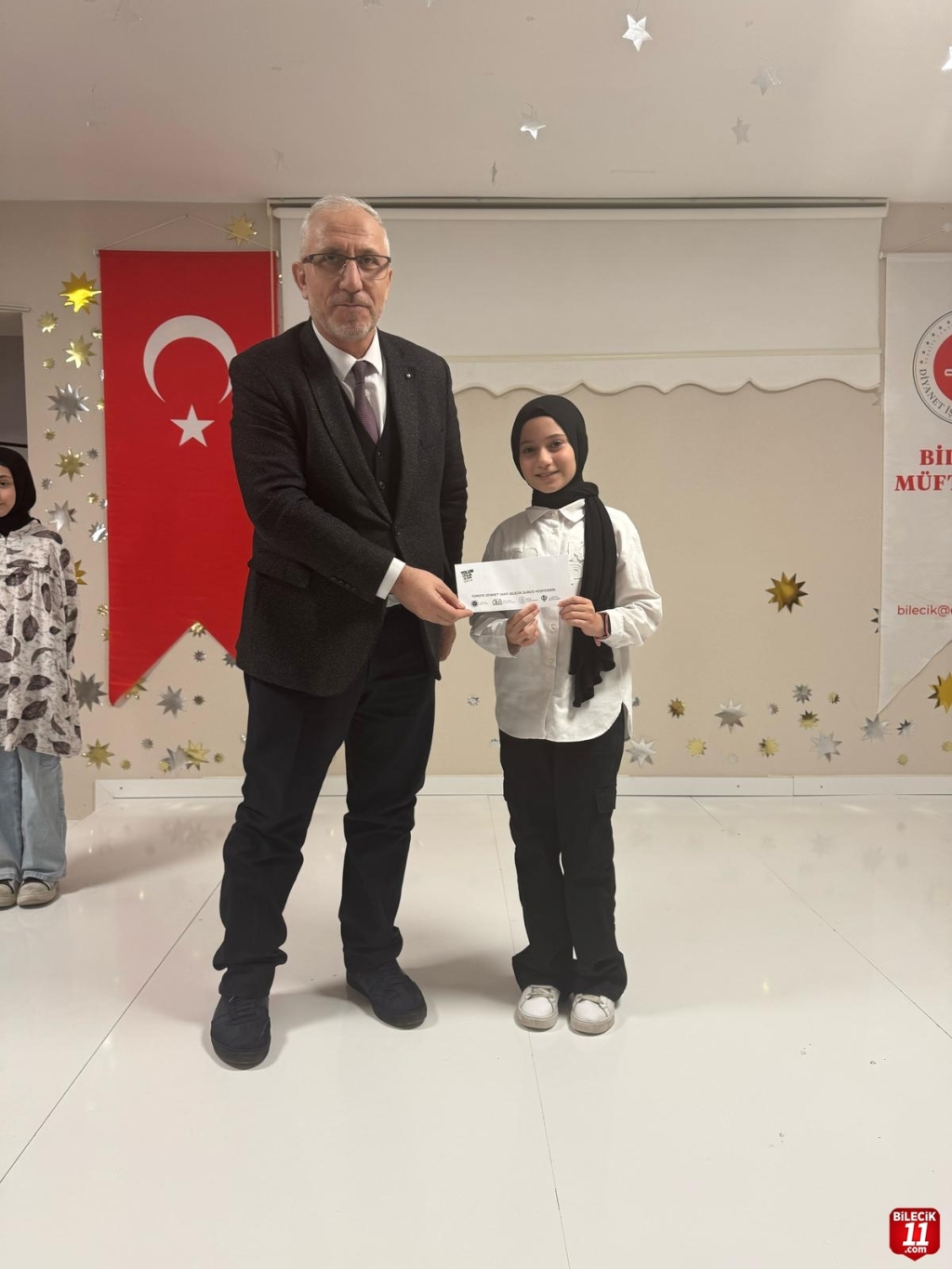 Dereceye giren öğrencilere ödülleri, Bilecik İl Müftü Yardımcısı Sabri Bağcı tarafından takdim edildi.
