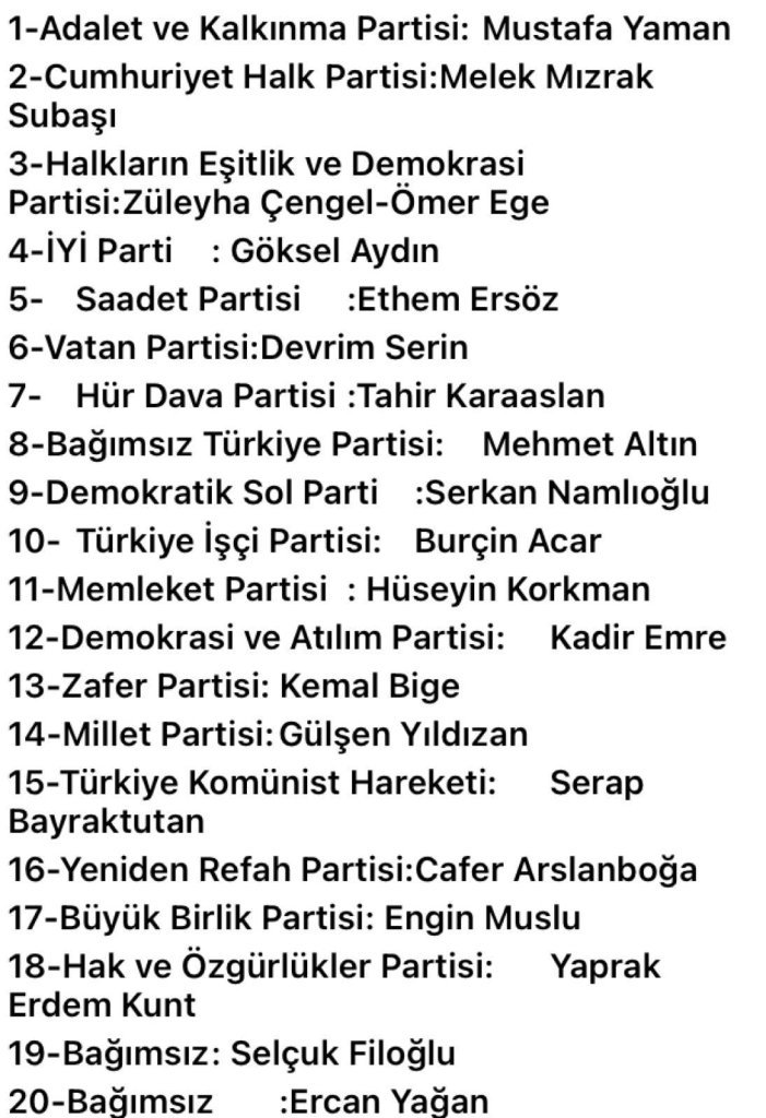 Bilecik’teki Belediye Başkan adayları ise şu isimlerden oluştu: