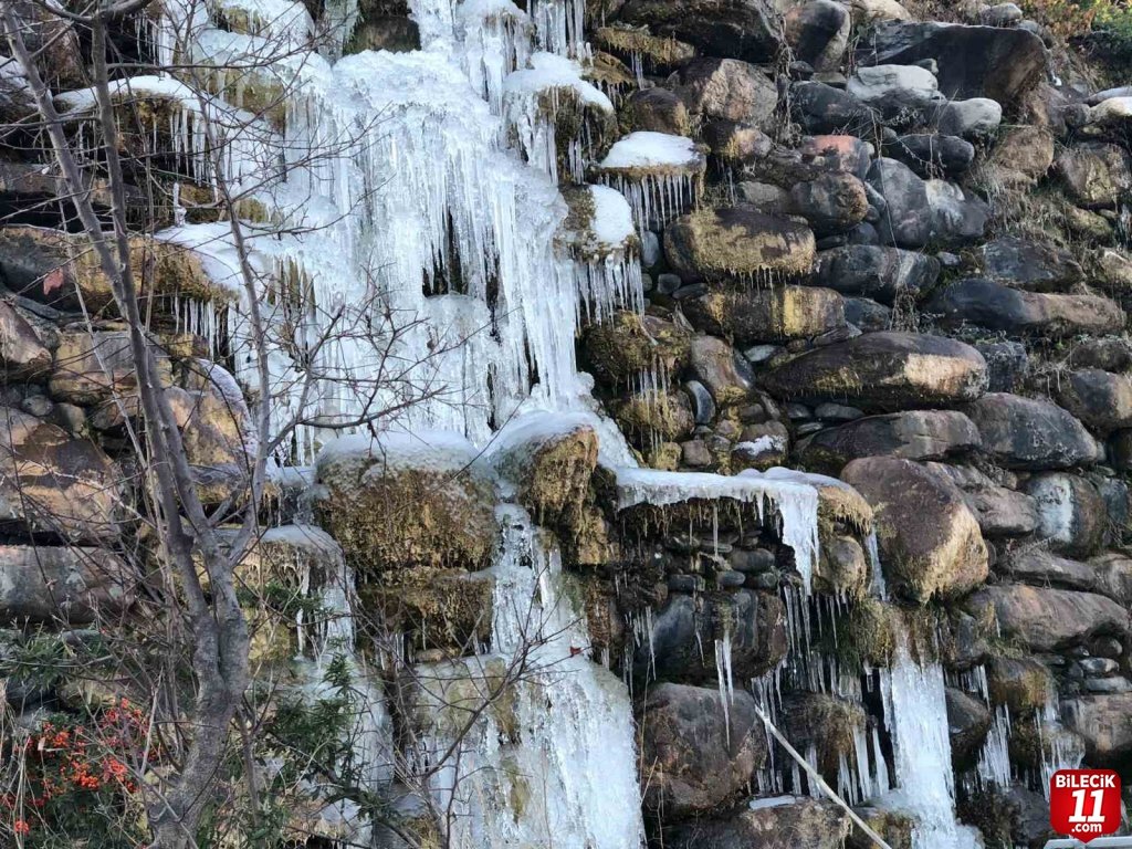 Yurdun büyük bir bölümünü saran soğuk hava Bilecik’te de etkisini sürdürürken, süs şelalesi dondu.