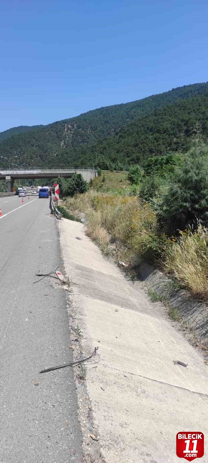 Kaza nedeniyle ulaşım Sakarya istikametine bir süre kontrollü şekilde verilirken, aracın çekici yardımı ile çekilmesi sonrası trafik akışı normale döndü. – İHA