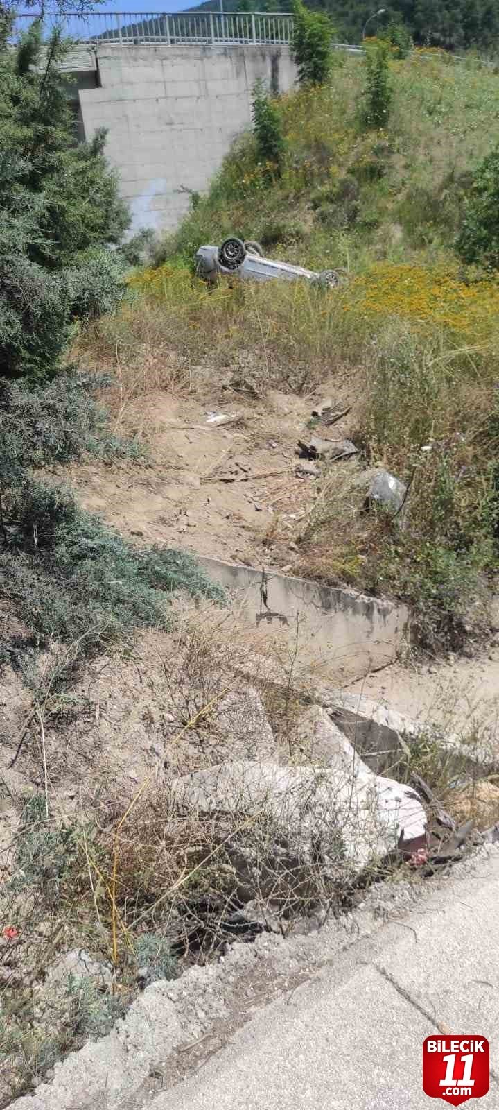 Bilecik’in Osmaneli İlçesinde sürücüsünün direksiyon hakimiyetini kaybettiği otomobil takla atıp ters dönerken sürücü kazayı burnu bile kanamadan atlattı.