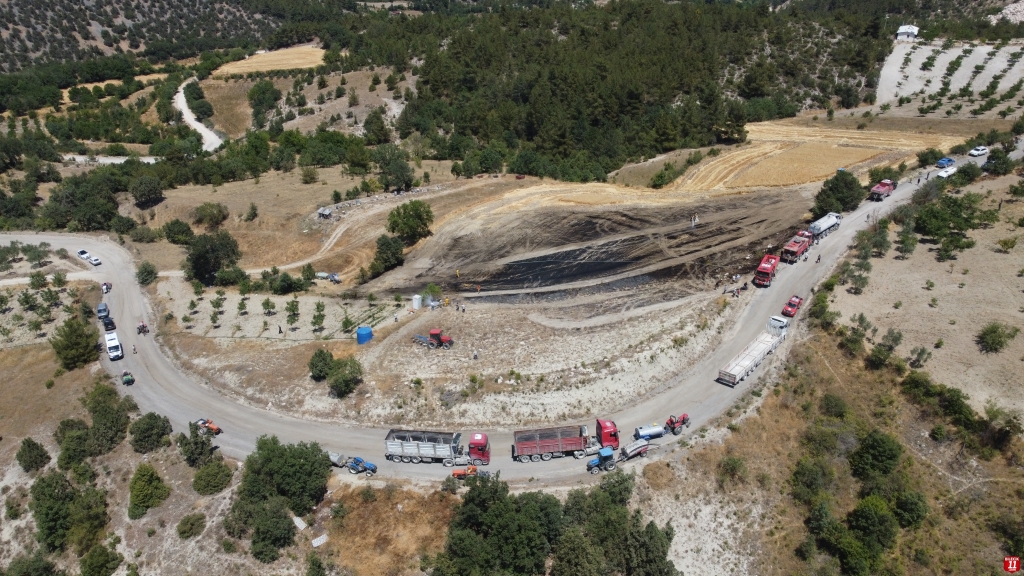Soğutma çalışmalarının devam ettiği bölgede yangının çıkış sebebi araştırılıyor.