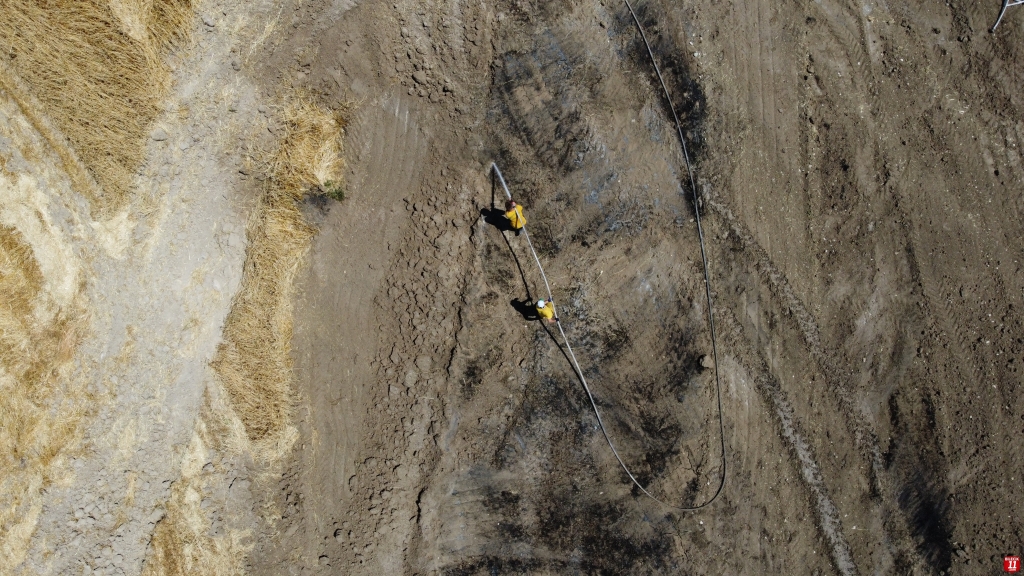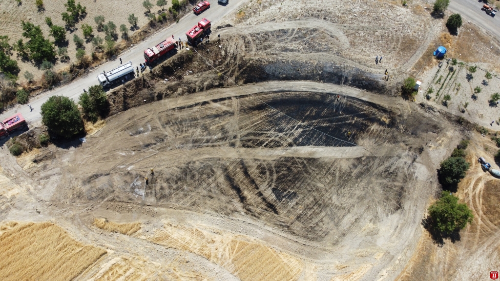 Köy mezarlığı yakınlarındaki yaklaşık 2 dönümlük tarımsal arazide henüz bilinmeyen nedenle yangın çıktı.