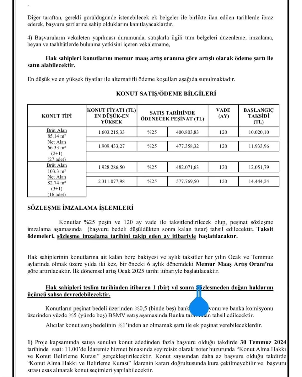 Başvuruların ardından, 30 Temmuz’da yapılacak kura sonrası asıl hak sahipleri, 5-6 Ağustos 2024 tarihlerinde ise sözleşme imzalayacak.