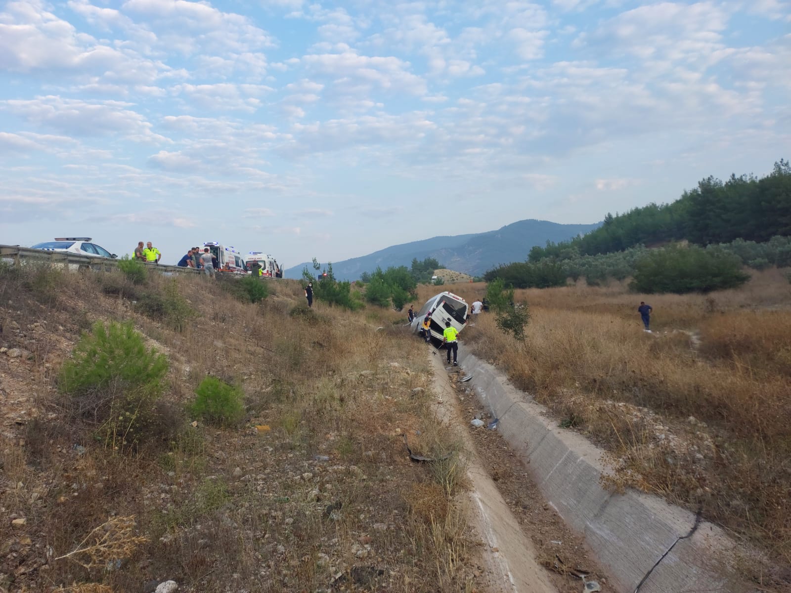 Yolun yaklaşık 5 metre aşağısında bulunan su kanalına girerek 140 metre ilerledikten sonra durabilen minibüste bulunan yolculardan 3’ü ağır, 10’u hafif şekilde yaralandı.