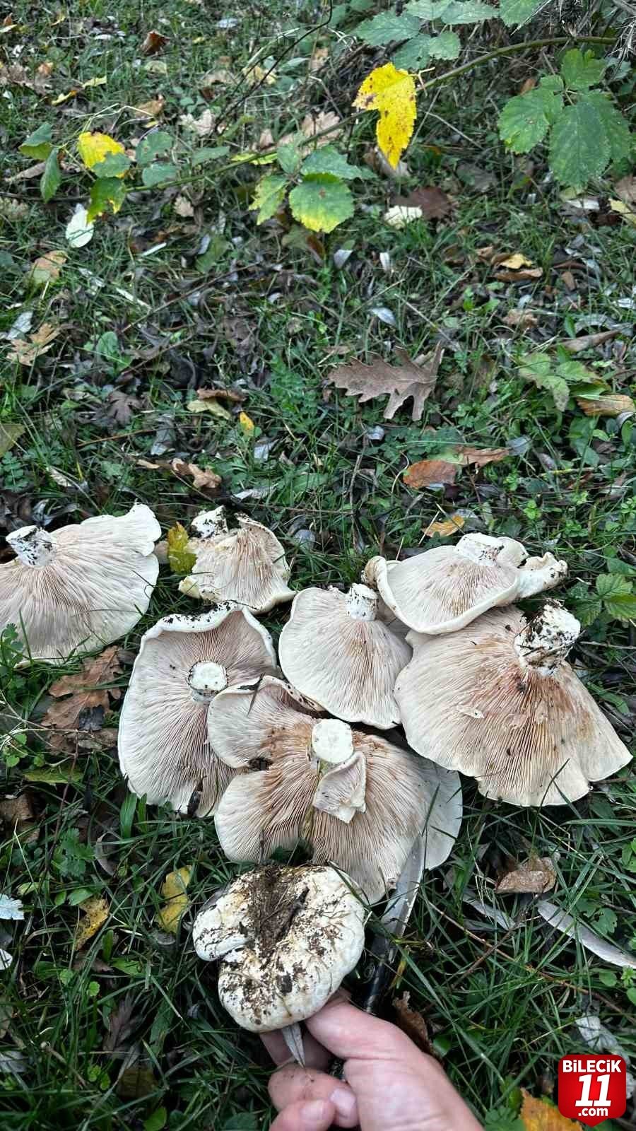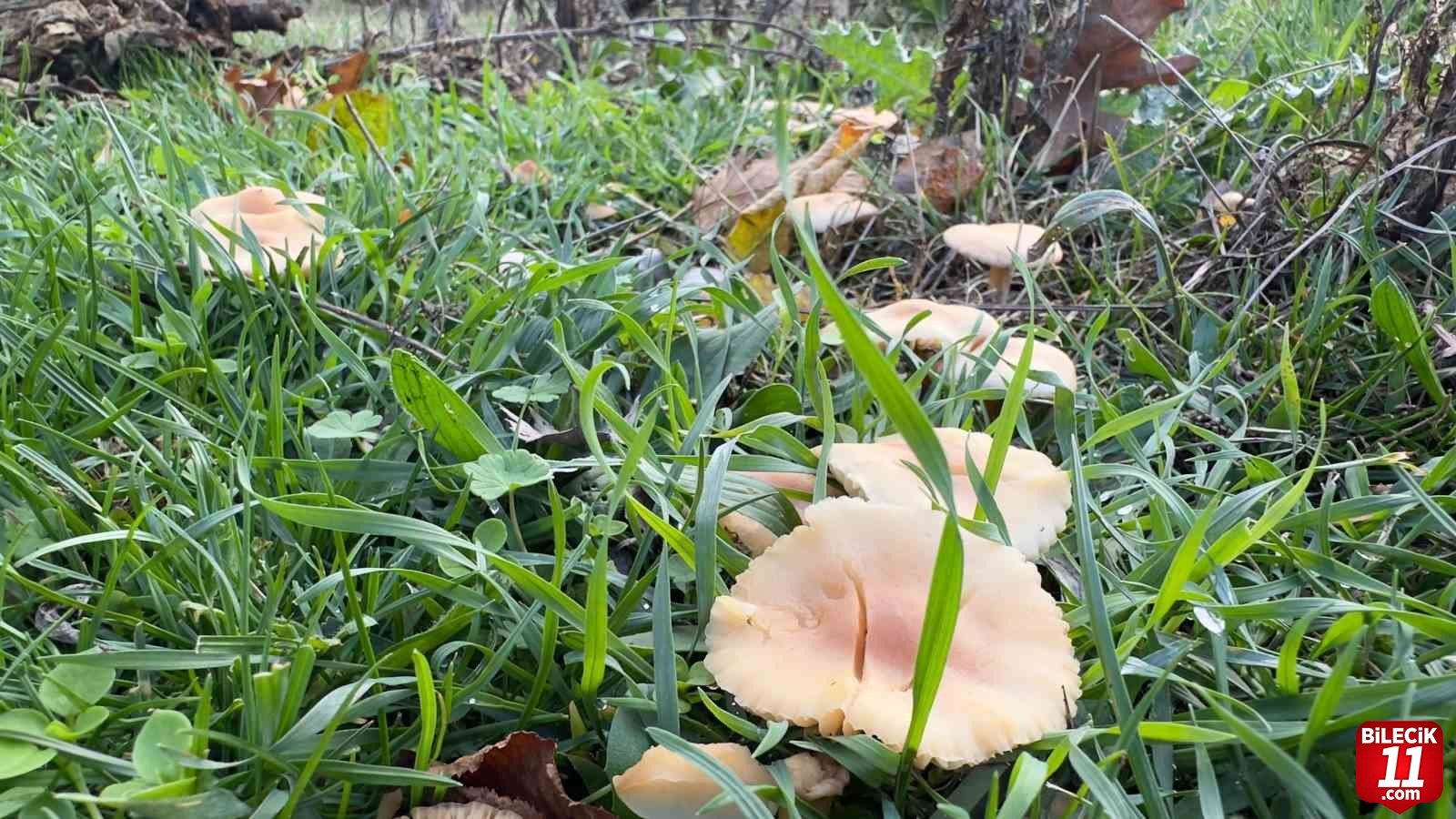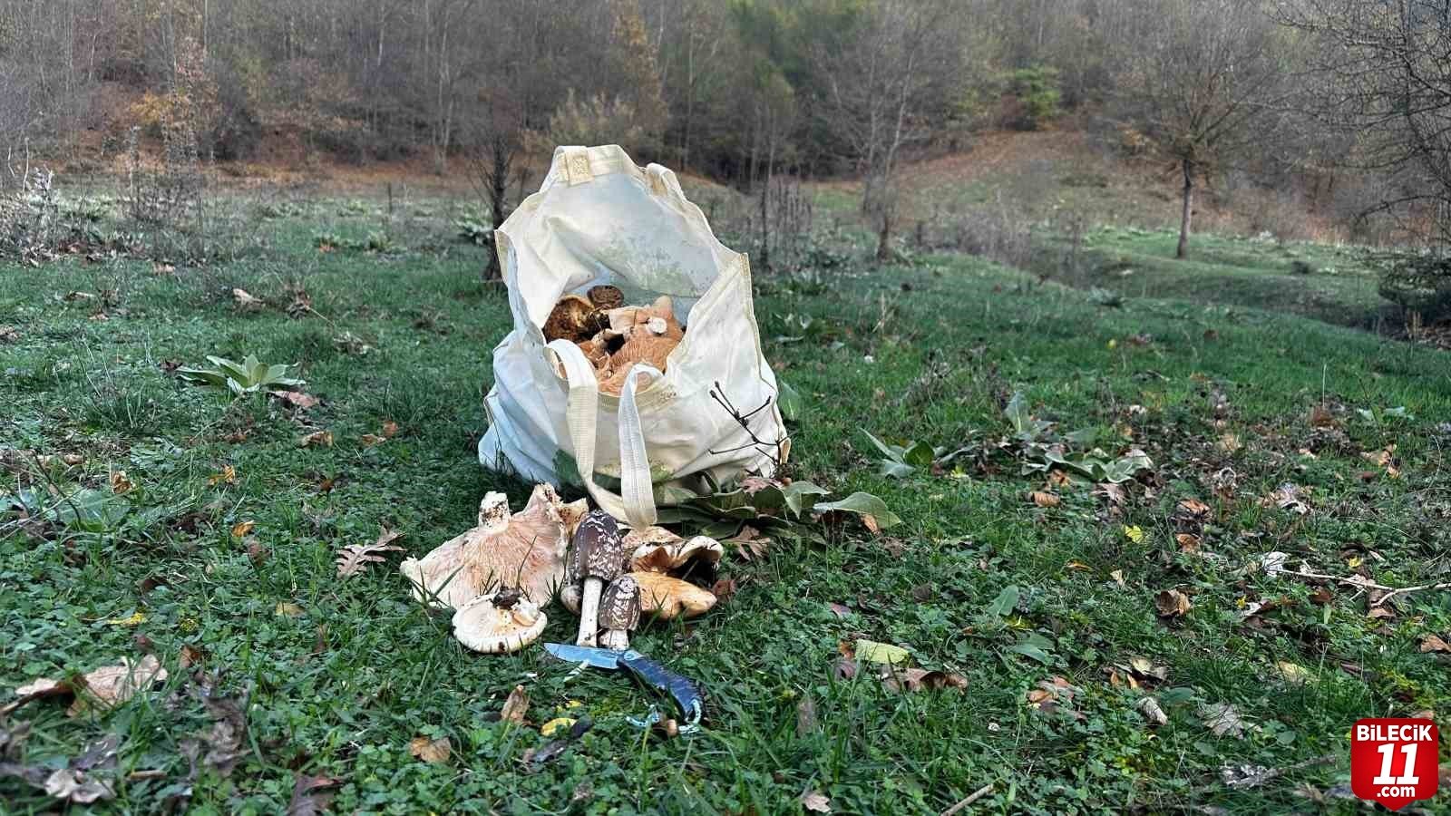 Havaların yağışlı gitmesi nedeniyle mantar bolluğu yaşanan Bilecik’te vatandaşlar çuval çuval kanlıca mantarı topladı.