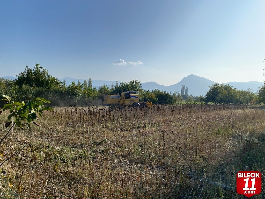 Gölpazarı’nda Nisan ayının ilk haftasında 19 bin 800 dekar yağlık, bin 850 dekar çerezlik ayçiçeği ekimi yapıldı. Eylül ayında başlayan hasat havaların güzel gitmesiyle birlikte bu aya kadar devam etti. Bu yıl yağışlar düzensiz olunca rekolte dönümüne 400 kilo ürün çıkarken, ilçede toplamda da 4 bin ton civarında hasat yapıldı. İlçedeki son hasatta olgunlaşan ve kararan ayçiçekleri için biçerdöverler tarlalara girdi. Üreticiler, bu sezon yağışlarını istenildiği gibi olmadığını, düzensiz yağış olsaydı bugünkü verimin 2 katını alabileceklerini belirtti.