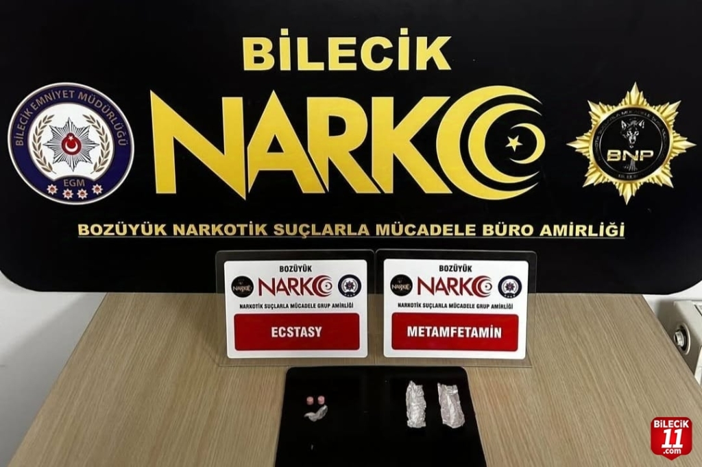 Bozüyük ilçesinde Narkotik Suçlarla Mücadele Şube Müdürlüğü ekiplerince yürütülen çalışmalarda, bu kişinin üzerinde 0,77 gram sentetik uyuşturucu ve 2 adet uyuşturucu hap ele geçirildi.