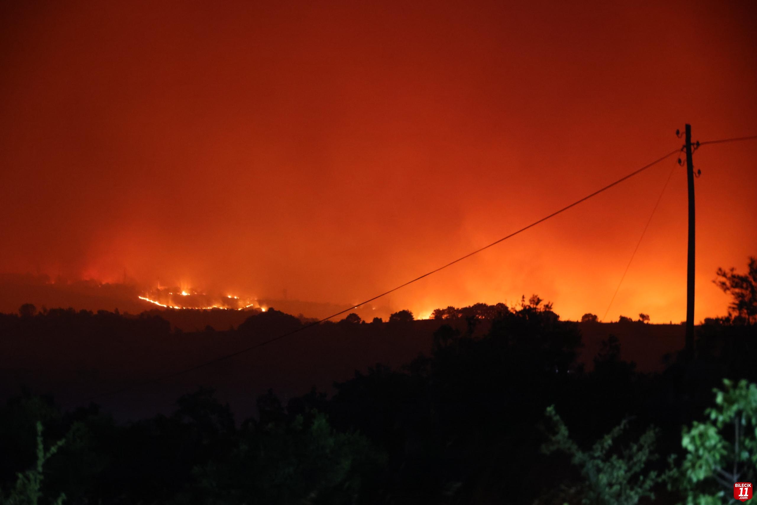 Yoğun çam ormanlarının bulunduğu bölgede, rüzgarın da etkisiyle yangının zaman zaman şiddetlendiği bildirilirken, sabahın ilk ışıklarıyla birlikte helikopterlerin tekrar devreye girmesi ve müdahalenin daha da hız kazanması bekleniyor.