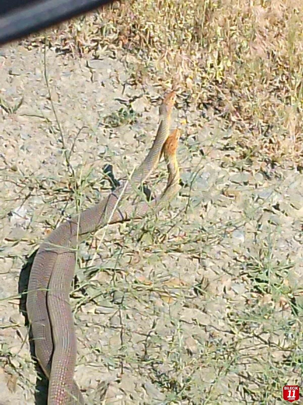 Otomobili ile seyir halinde olan bir kişi, Osmaneli- İznik karayolu Düzmeşe köyü mevkiinde yol üzerinde boyları yaklaşık 2 metre olan 2 yılan gördü.