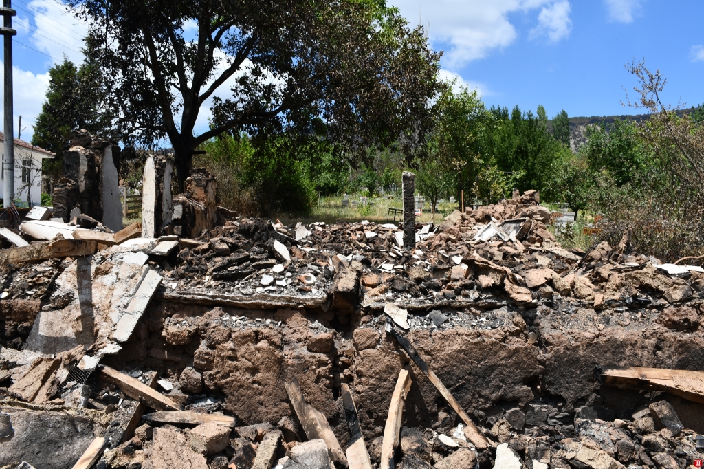 “Geldiğimizde ev tamamen yanmıştı. Evi öyle görünce kendimi kötü hissettim, üzüldüm. Her taraf yanmış. 1980’de önceki oturduğum evle birlikte 2 ev yanmıştı. 1981’de bu evi köylülerimizin yardımıyla yaptım. Bu evde hanım, babam ve annem birlikte yaşadık. Hanımla yazları köyde kalıyoruz, kışın ilçeye gidiyoruz. Burada hanımla, çocuklarımla ve torunlarımla yaşadığım anılarım yangınla birlikte yandı.”