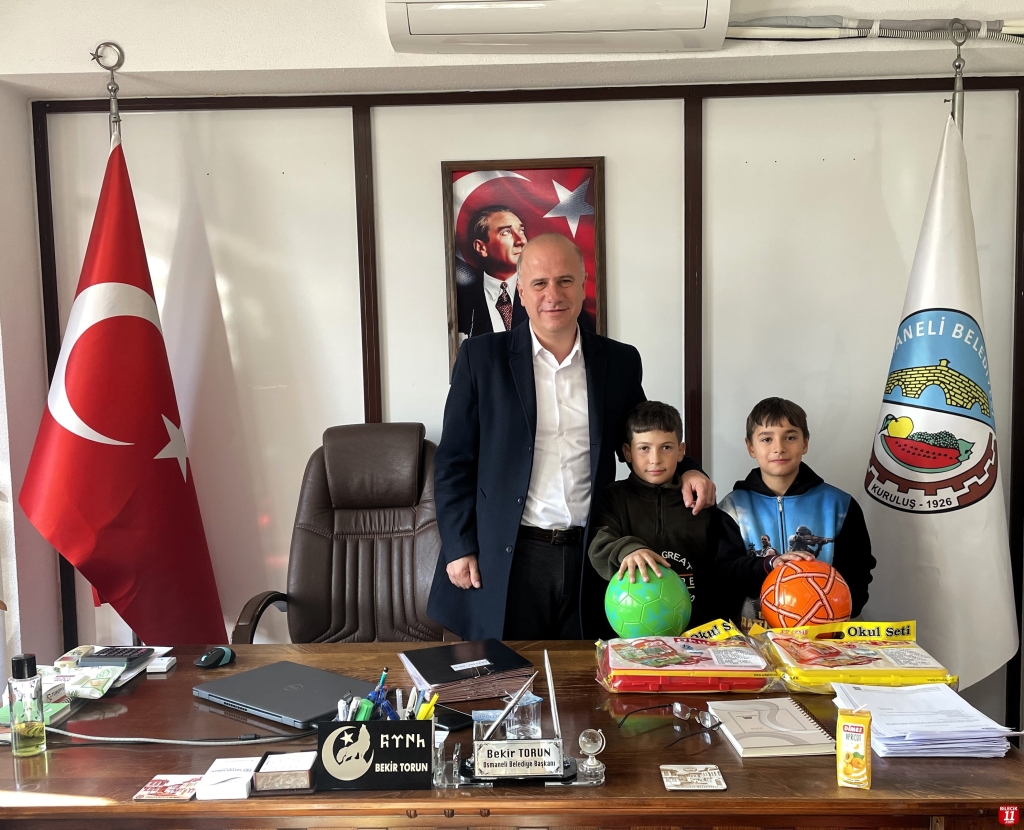 Osmaneli Belediye Başkanı Bekir Torun, öğrencileri örnek davranışlarından dolayı makamında ağırladı.