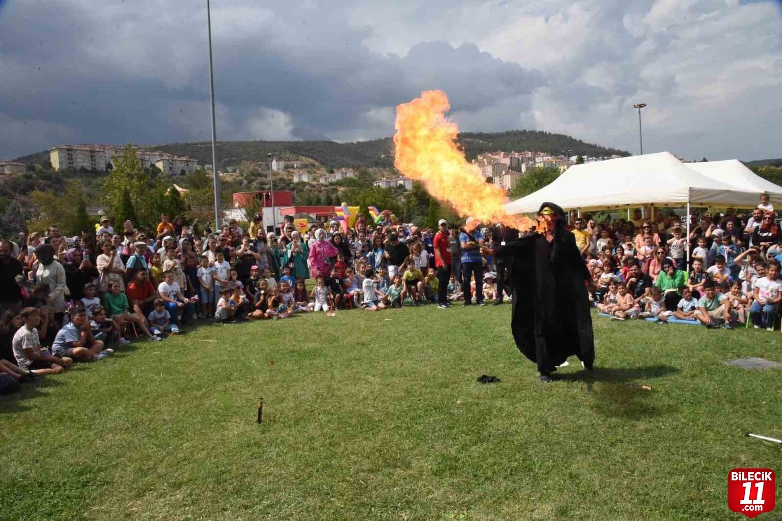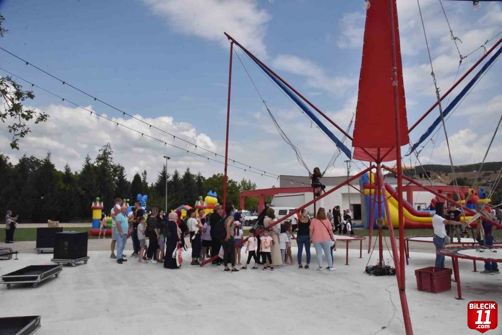 Bilecik Belediyesi tarafından düzenlenen şenlikte bir araya gelen yüzlerce çocuk, birbirinden güzel gösterileri izledi, şişme oyun gruplarında gönüllerince eğlendi.