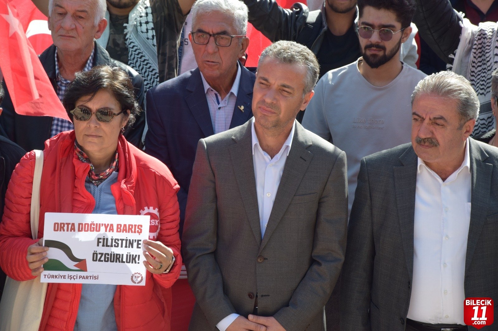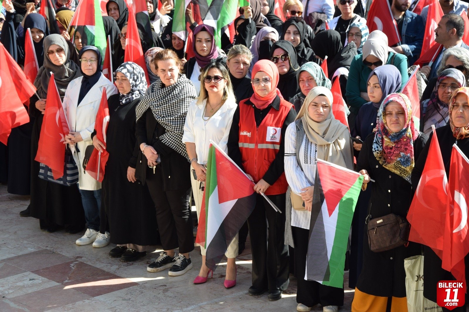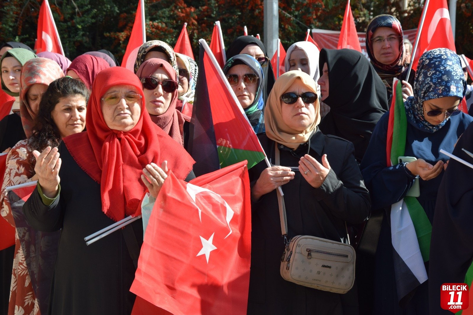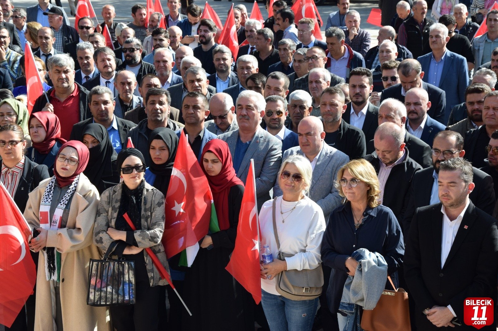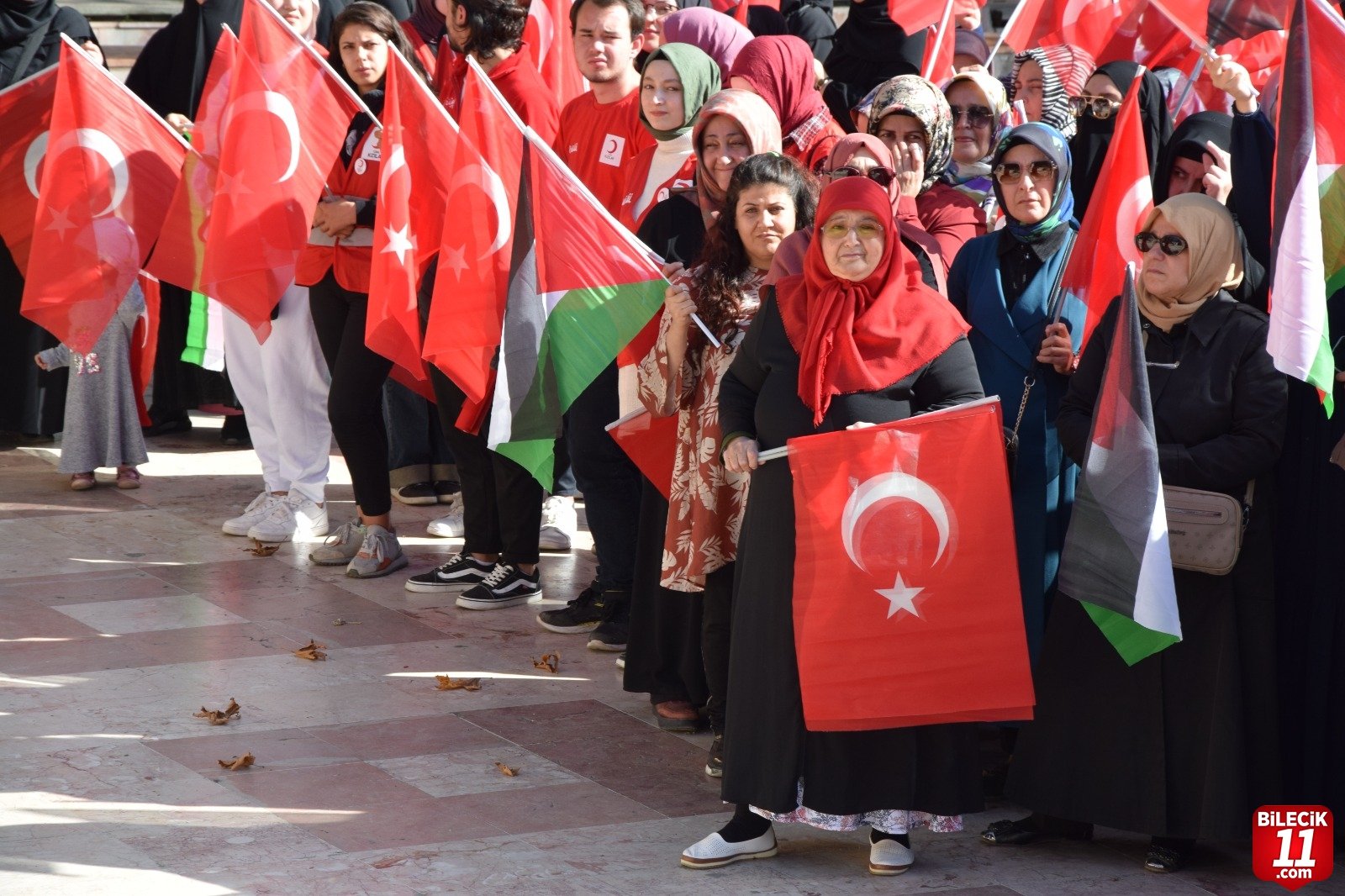 Bilecik’te toplanan yüzlerce kişi, İsrail’in Filistin’e uyguladığı zulümü kınadı.