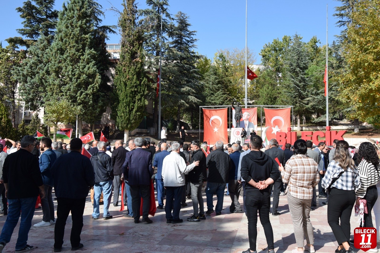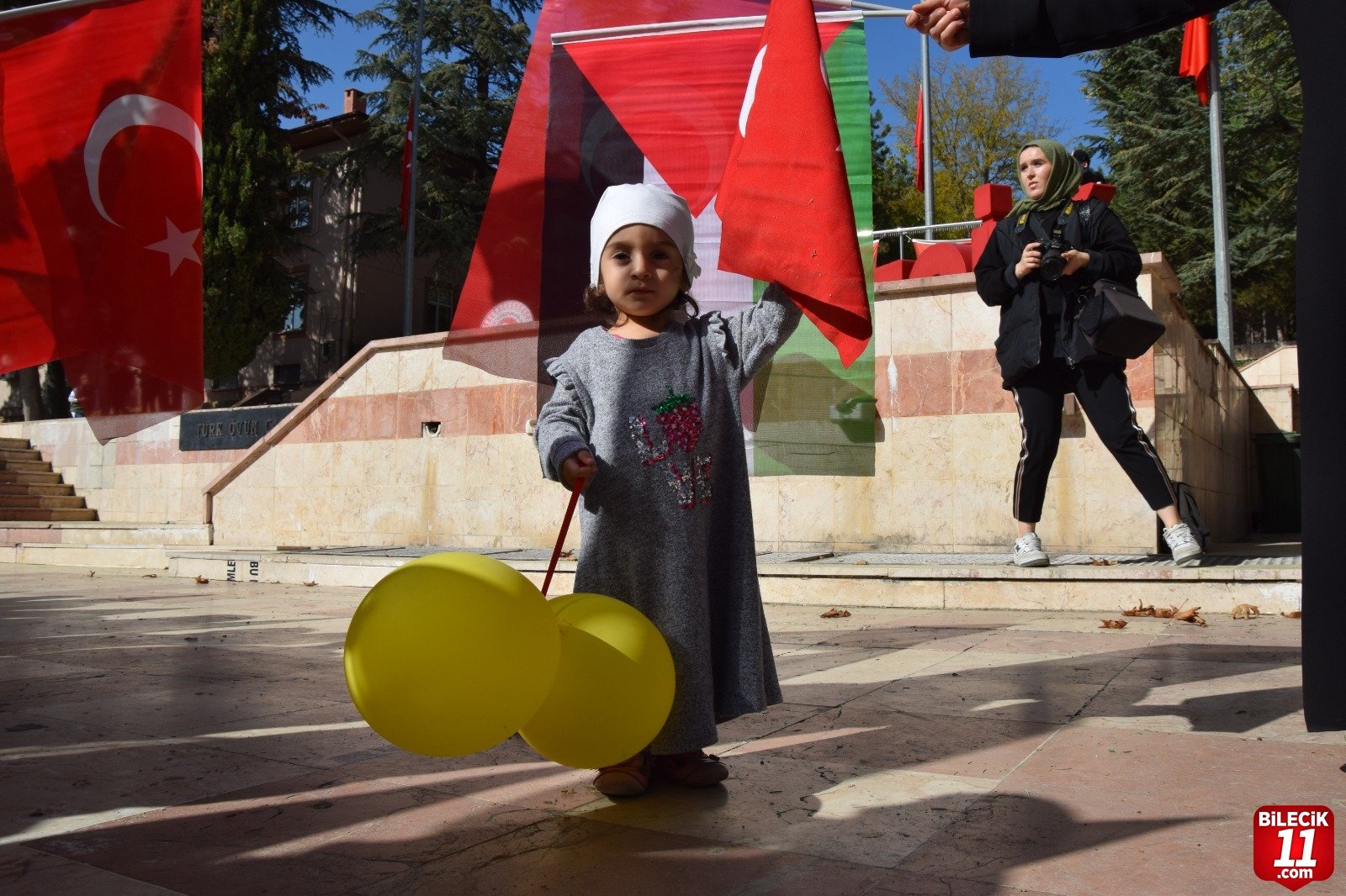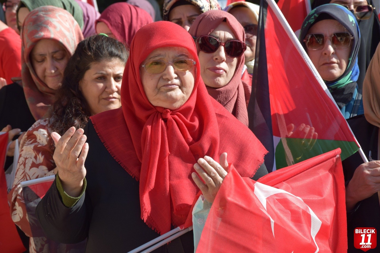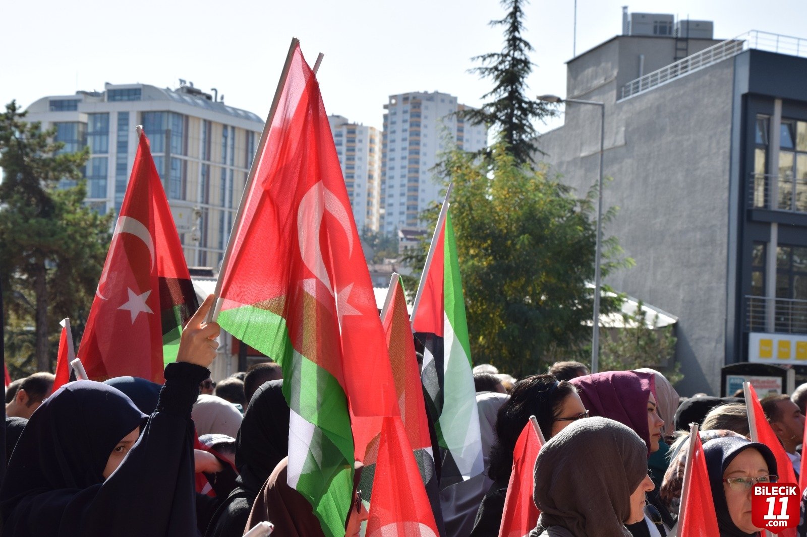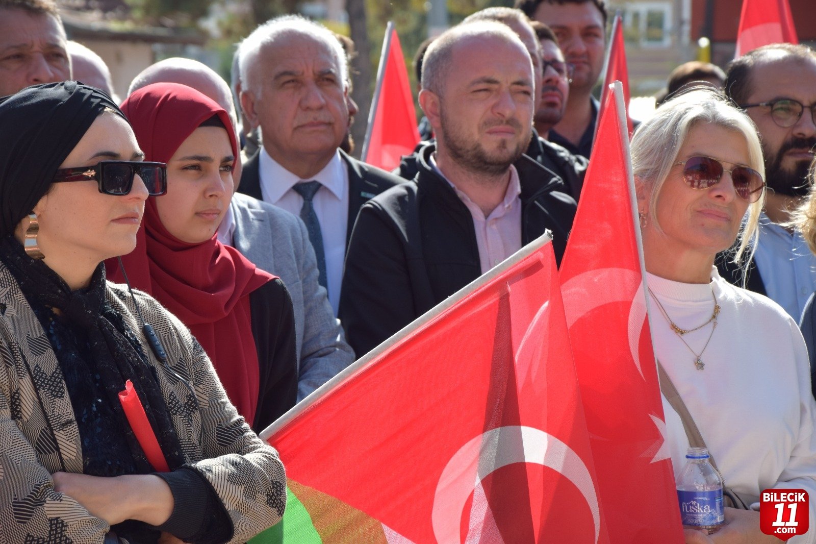Bilecik’te toplanan yüzlerce kişi, İsrail’in Filistin’e uyguladığı zulümü kınadı.